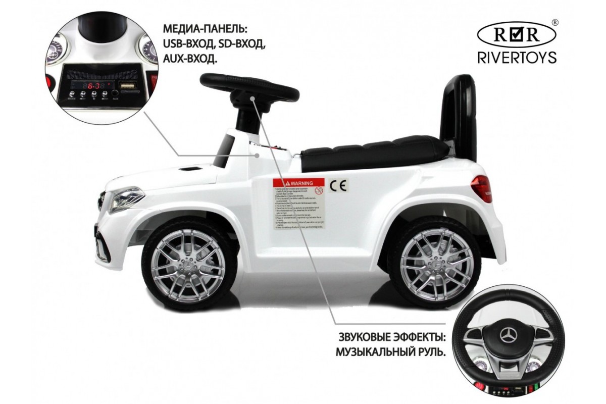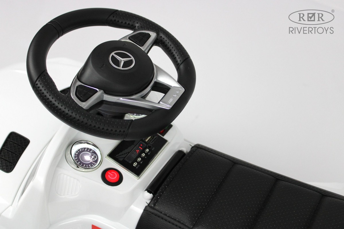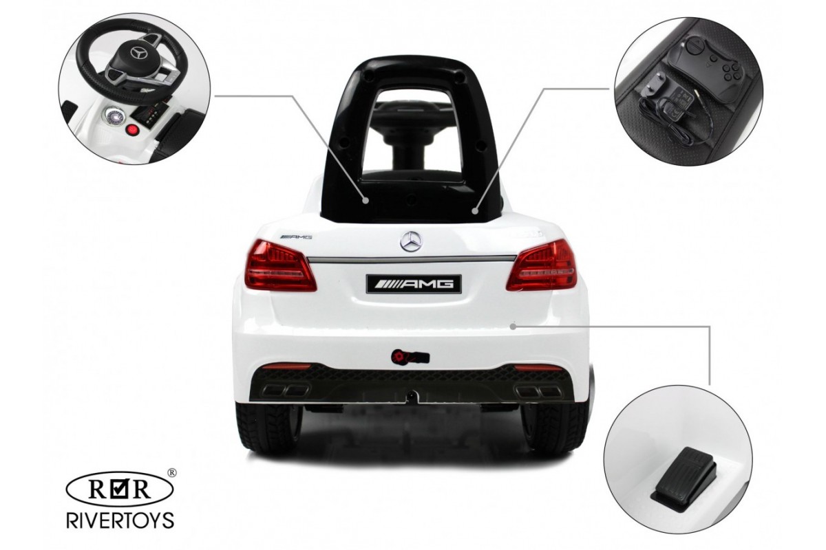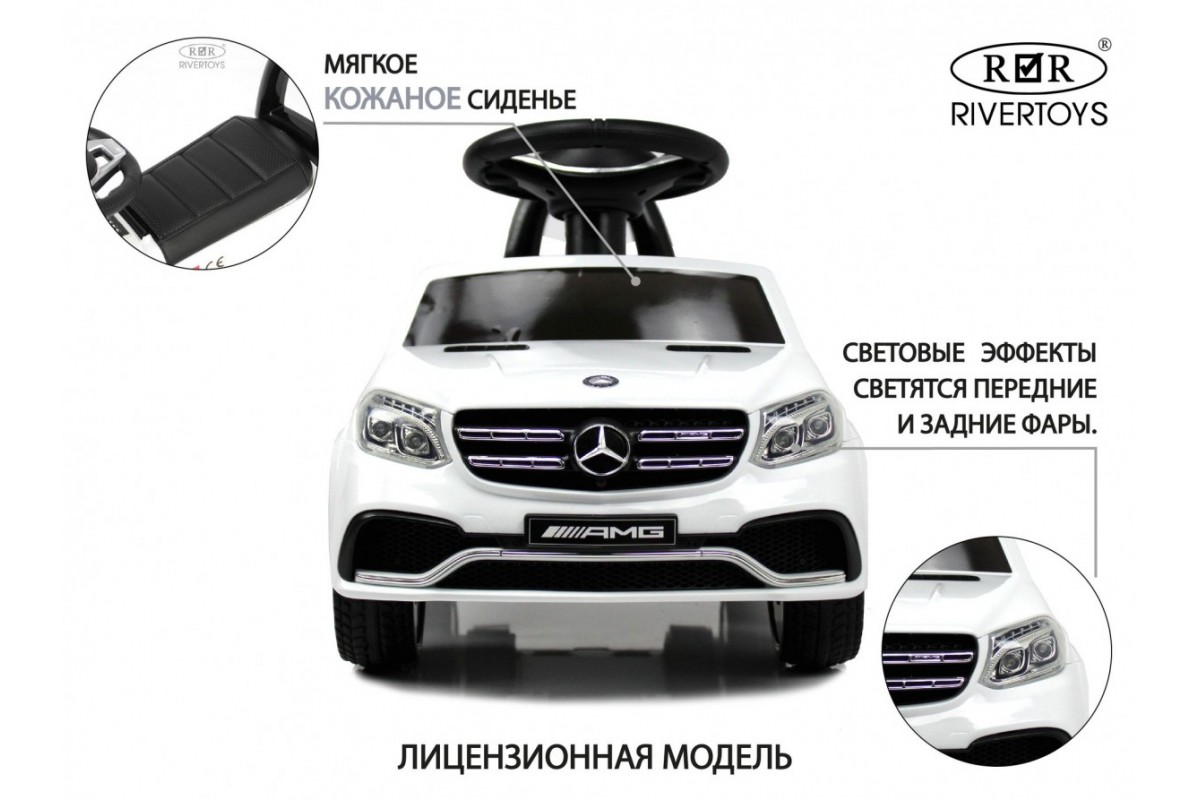 Толокар-электромобиль Mercedes-AMG GLS 63 (HL600) (ЛИЦЕНЗИОННАЯ МОДЕЛЬ) представляет собой уменьшенную копию Mercedes-AMG GLS 63, выполненную по лицензии компании. Ребенок может отталкиваться ножками или использовать для передвижения педаль газа. Модель имеет подсветку передних и задних фар, привод на задние колеса, а также удобное мягкое кожаное сиденье со спинкой. Есть подсветка днища.