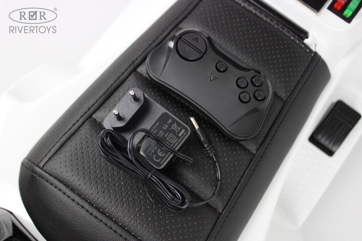 Двигатель запускается кнопкой на панели приборов. Электротолокар разгоняется до 4 км/ч. Родительский контроль осуществляется при помощи индивидуального пульта, работающего на частоте 2,4 ГГц. В собранном виде размеры модели составляют 77х28х55 см без ручки и 81х37х89 см (с ручкой), а вес – 9,1 кг.