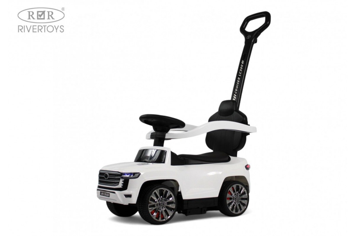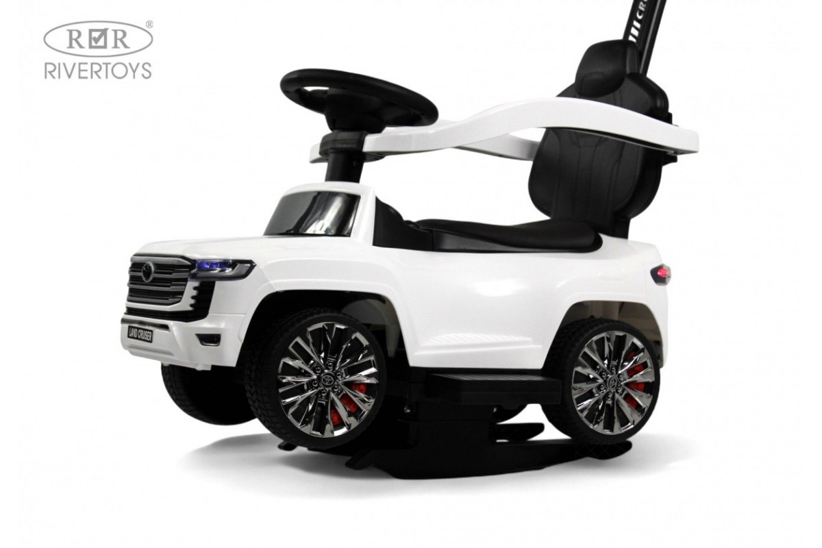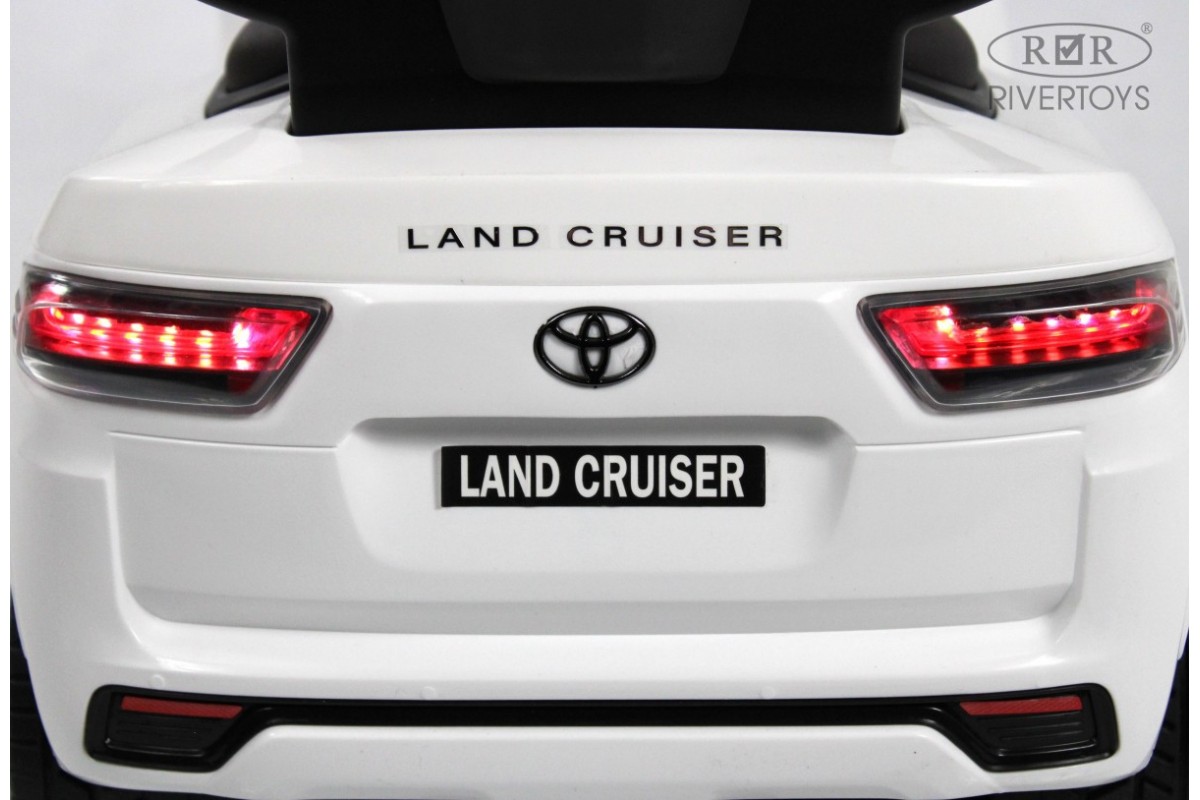 Толокар Toyota Land Cruiser 300 Z002ZZ-A Музыкальный руль: звук клаксона/мелодии заводские Световые эффекты: светятся передние и задние фары Включение: кнопка Пульт управления: индивидуальный (настраивается по Bluetooth), от батареек 2шт 1.5v AA Колеса: каучуковые Сиденье: эко-кожа Скорость: вперед/назад, 2,5-3 км/ч Движение: от педали (выдвигается подножка), двигатели отключаются во время ручного управления Медиа-панель: USB-вход, SD-вход, mp3-вход, BlueTooth Боковые фиксаторы безопасности: да Выдвижные подножки: да Нижняя часть трансформируется в качалку: да Съемная ручка для поддержки и управления машинкой: да ( поворотные колеса) Размер собранной модели: 78*42*97см Вес собранного изделия: 6,7 кг Максимальная нагрузка: 30 кг Аккумулятор: 6V/4,5Ah Редуктор: 1*6V/RS390 15000об