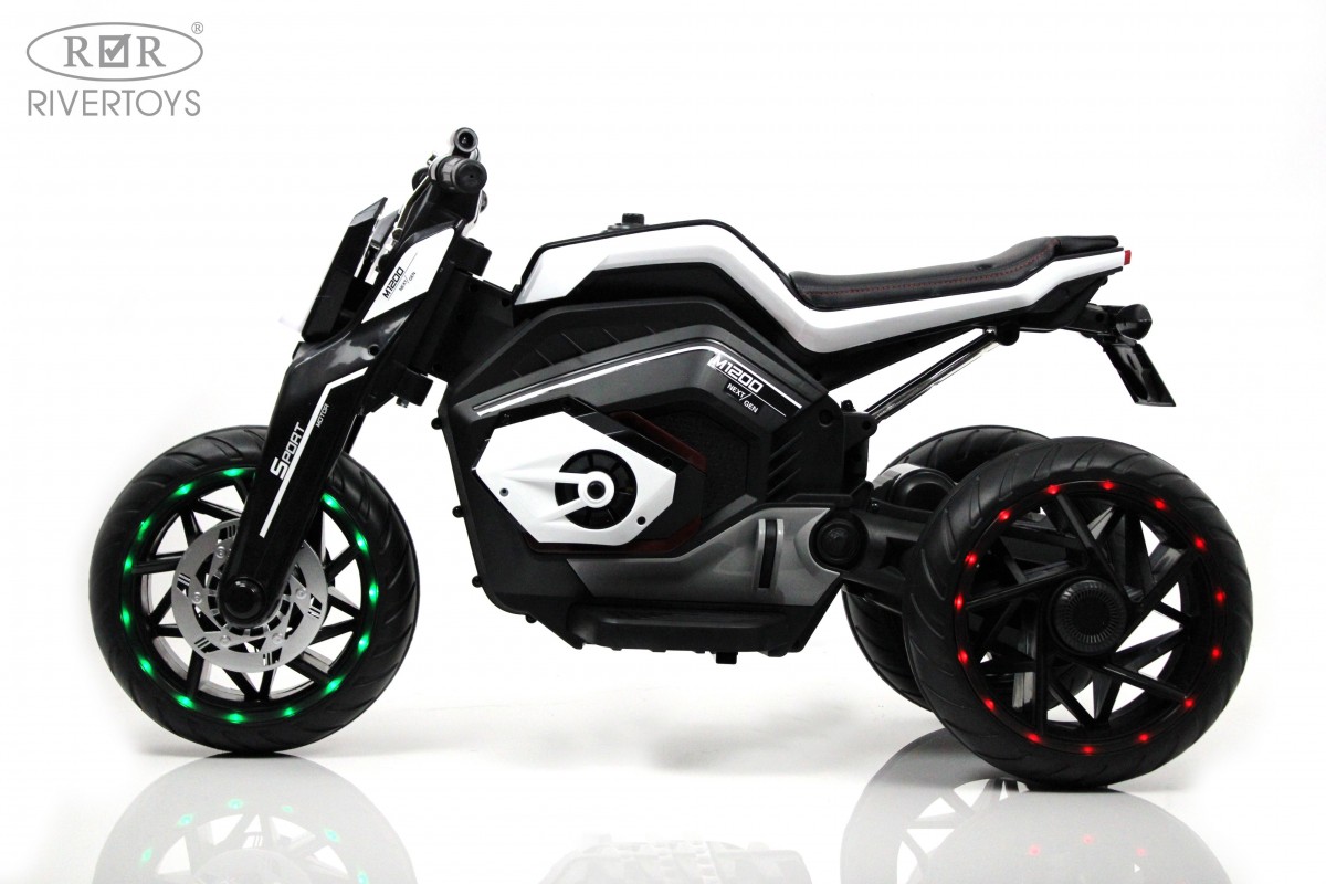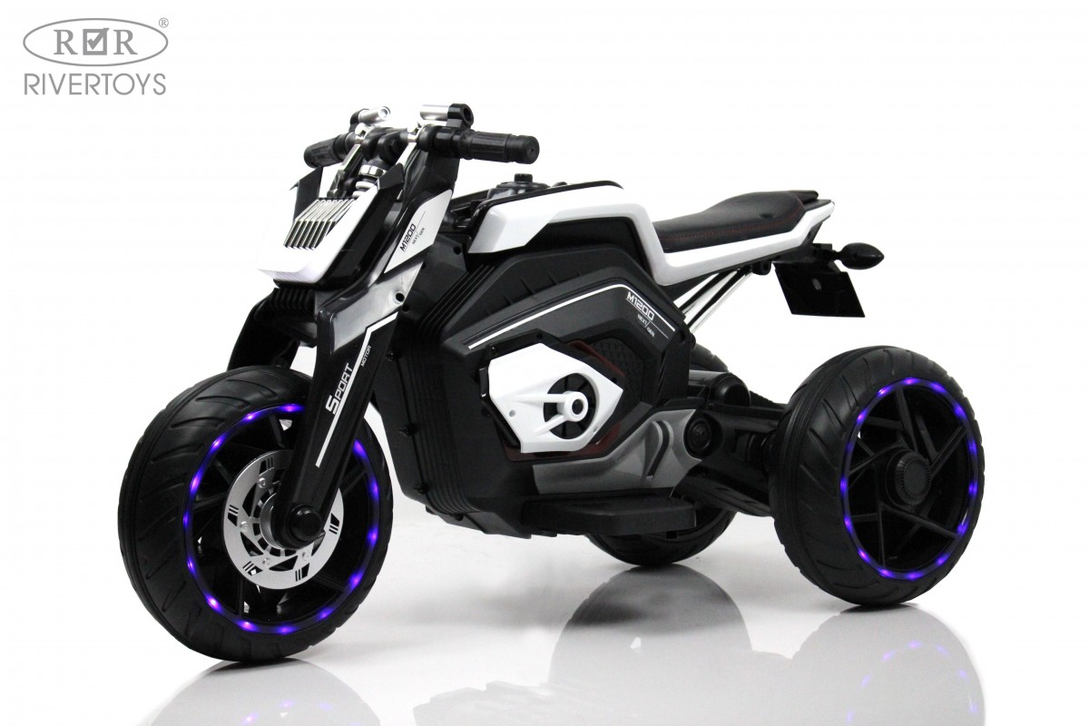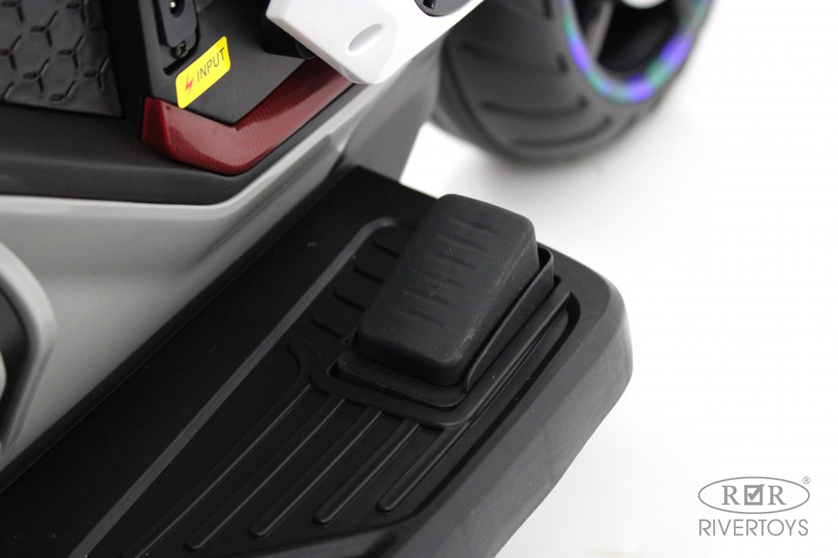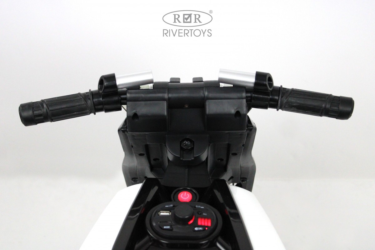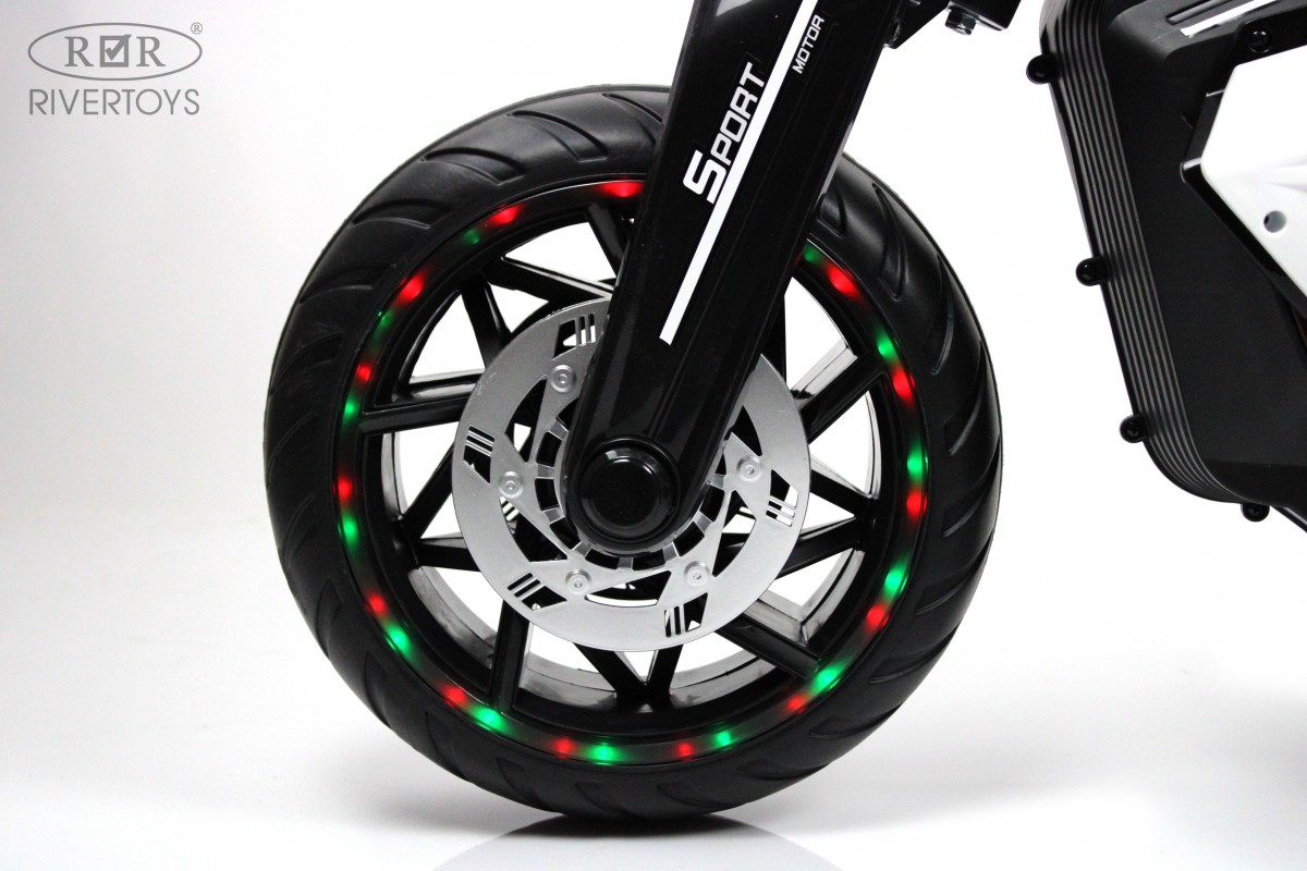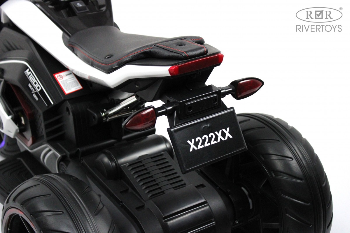 RiverToys X222XX – детский электротрицикл с устойчивой конструкцией, которую обеспечивают 3 колеса. Они выполнены из каучука и имеют светодиодную подсветку. предусмотрены приставные колеса, которые будут полезны для начинающих гонщиков, а потом их можно будет снять. Передние фары светодиодные.