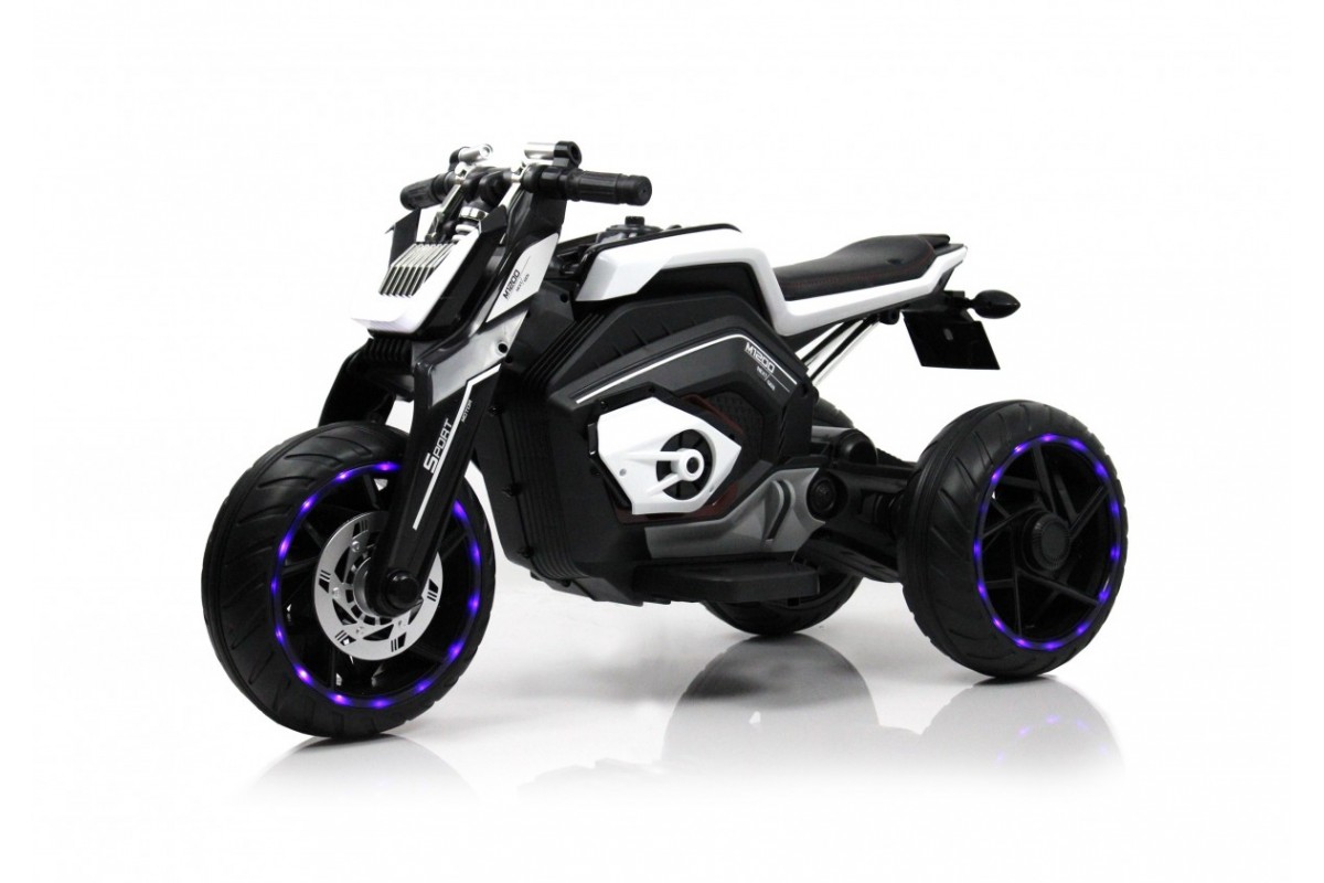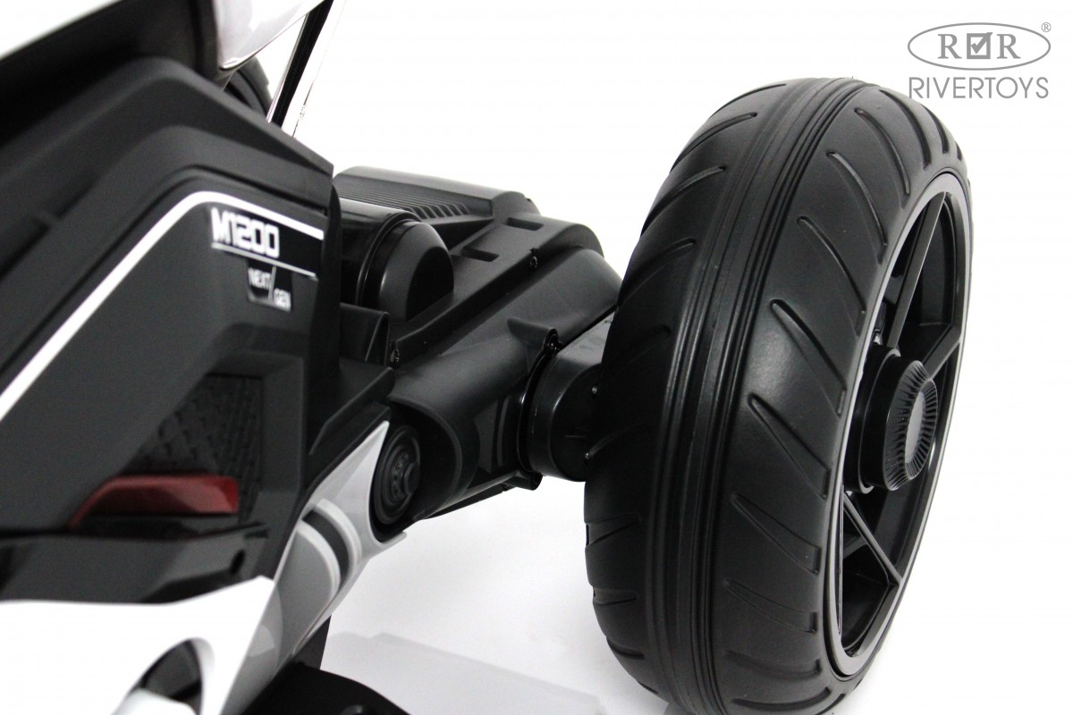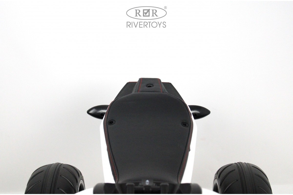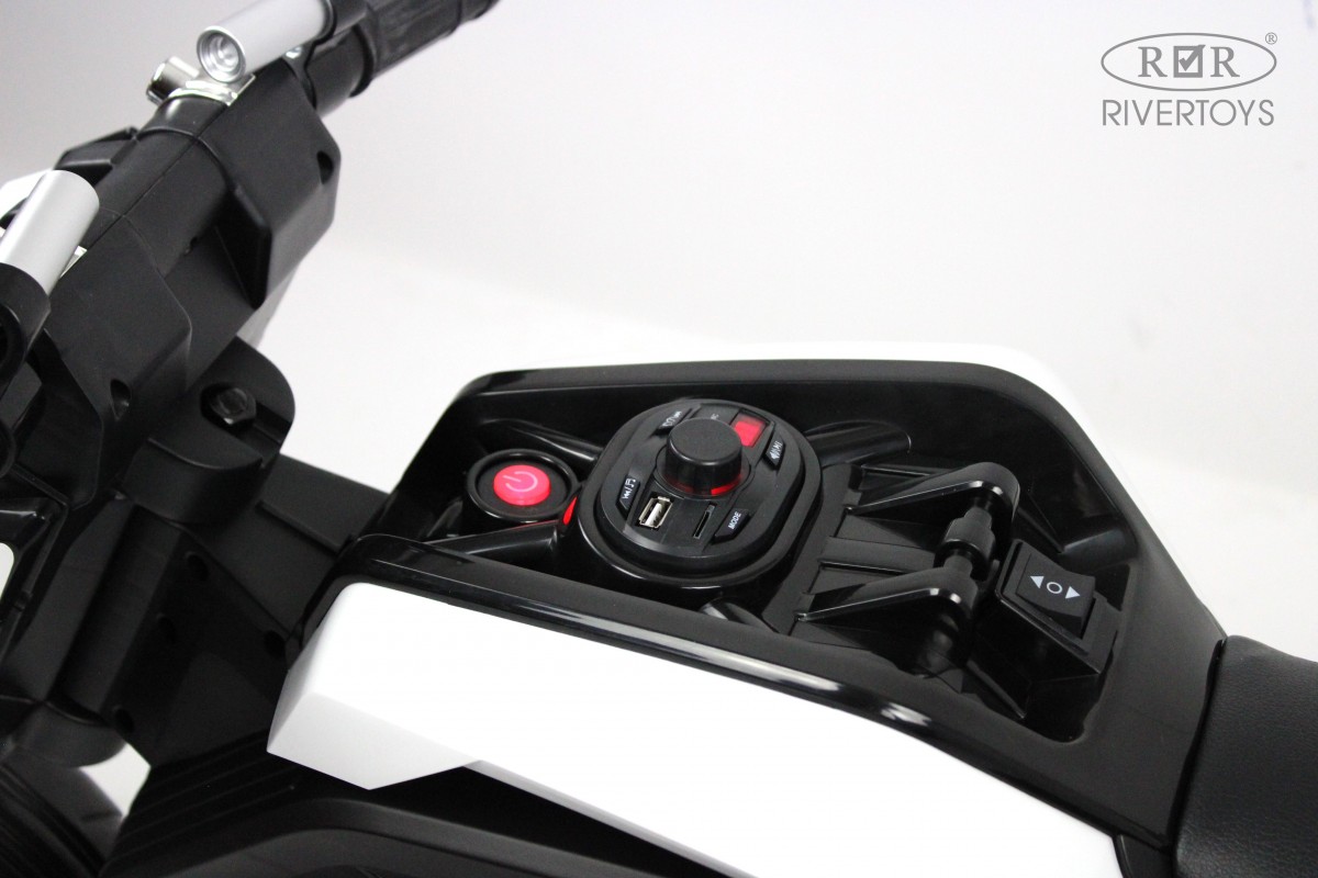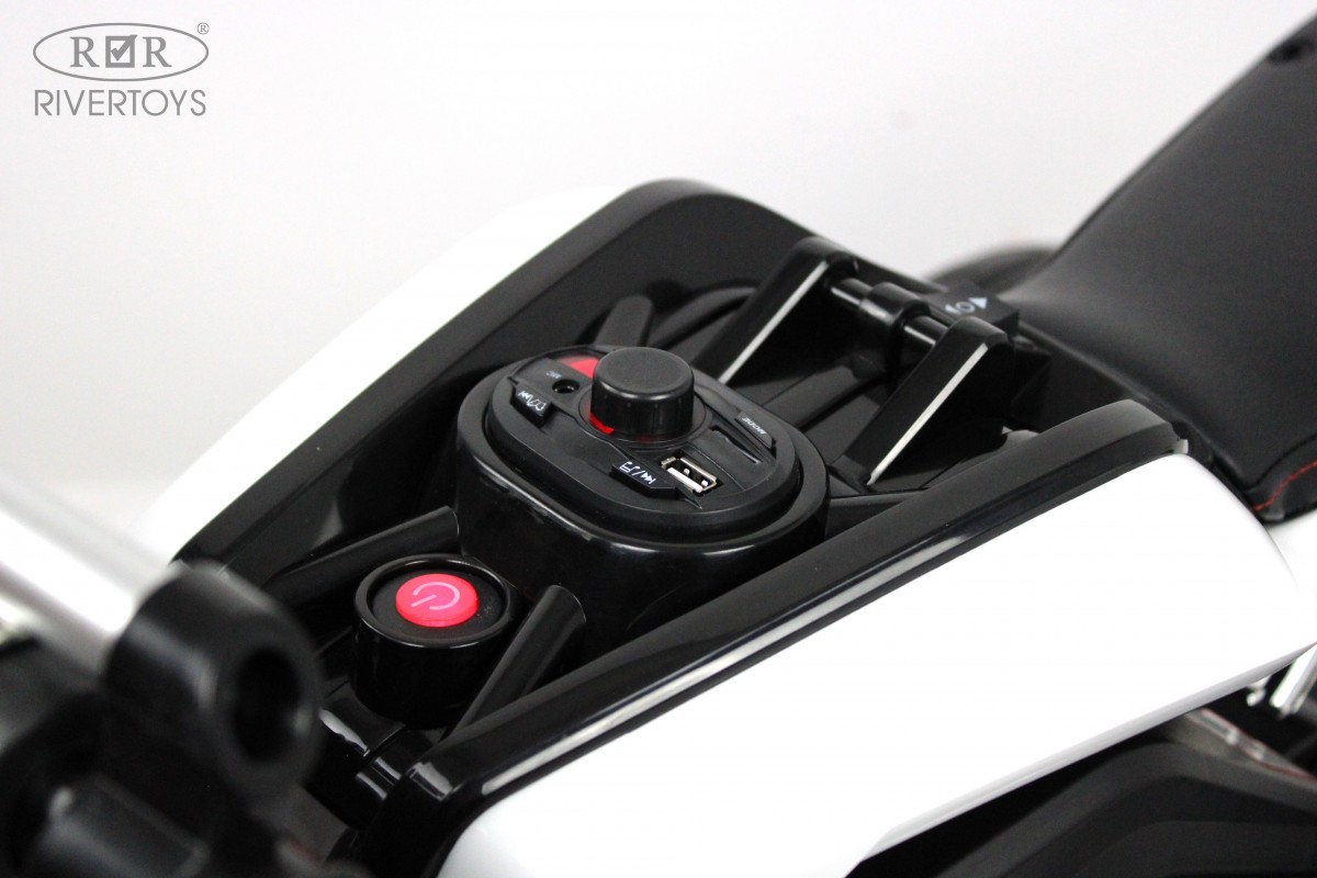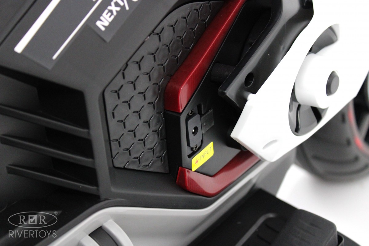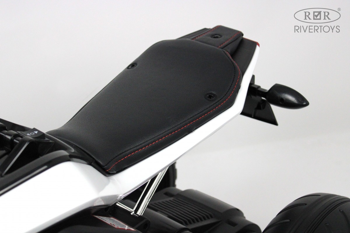 RiverToys X222XX – детский электротрицикл с устойчивой конструкцией, которую обеспечивают 3 колеса. Они выполнены из каучука и имеют светодиодную подсветку. предусмотрены приставные колеса, которые будут полезны для начинающих гонщиков, а потом их можно будет снять. Передние фары светодиодные.