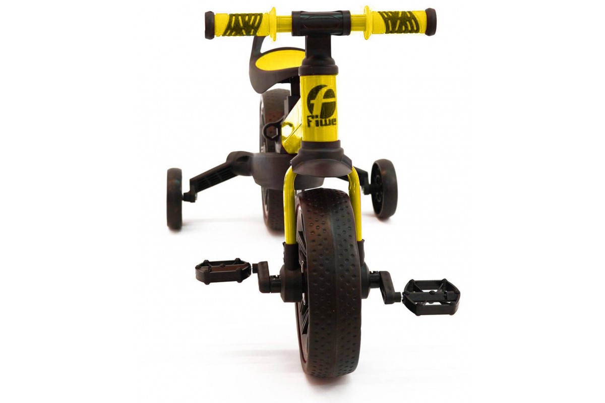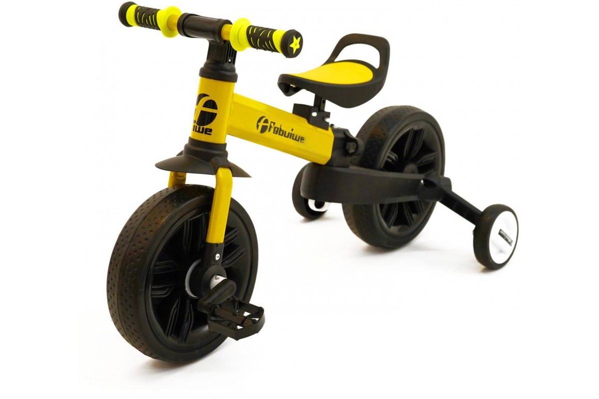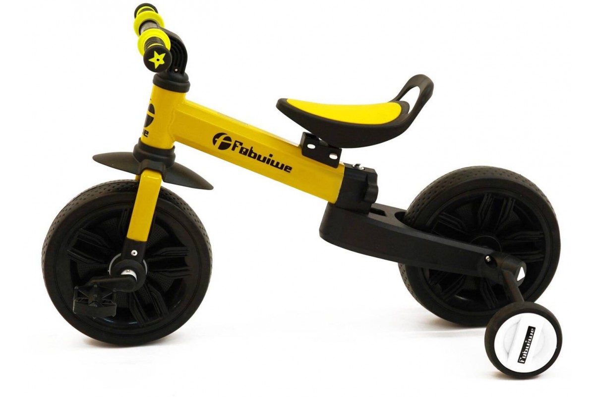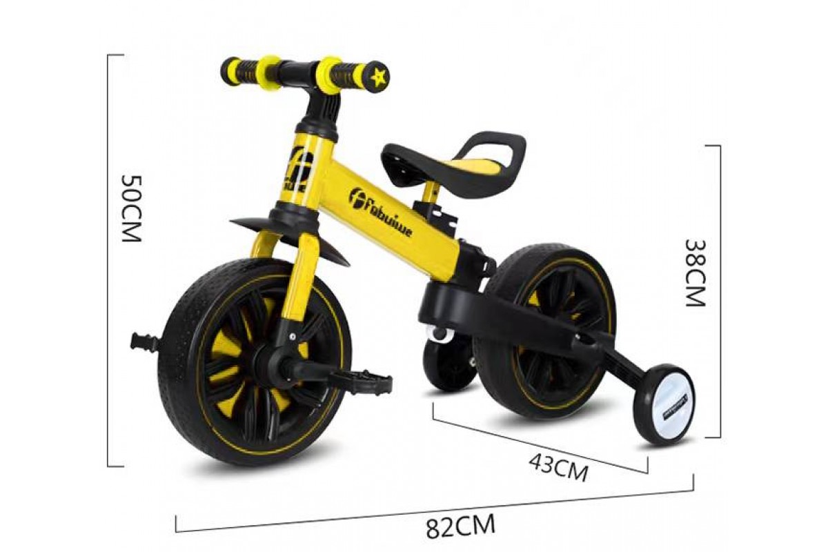 Детский велосипед-беговел 4 в 1 Fobuiwe 110 с родительской ручкой - FB-110-PLUS-YELLOW - это трехколесный велосипед-беговел с родительской ручкой, который оснащен съемными педалями и подвесными задними вспомогательными колесами, поэтому его можно использовать, как беговел, а также, как обычный трехколесный велосипед с педалями. Благодаря родительской ручке взрослые поначалу могут помогать еще слабым ножкам привести в движение данную модель, но потом она помогает контролировать передвижение на опасных участках.