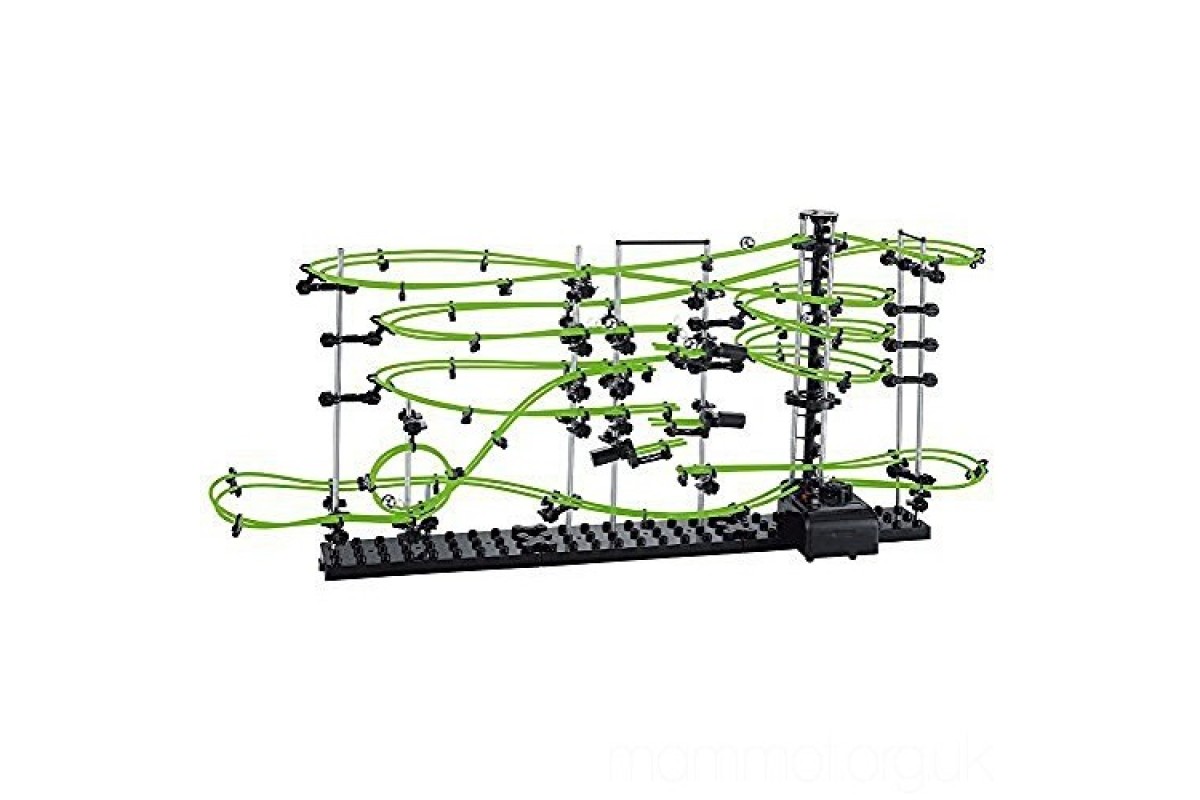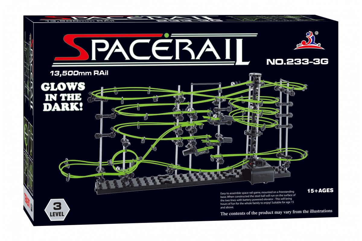 Динамический конструктор Космические горки, новая серия, светящиеся рельсы, уровень 3 - 233-3G - это конструктор SpaceRail 3 уровня у которого рельсы светятся в темноте и это позволяет наблюдать за перемещением металлических шариков по рельсам конструктора протяженностью 13,5 метров.