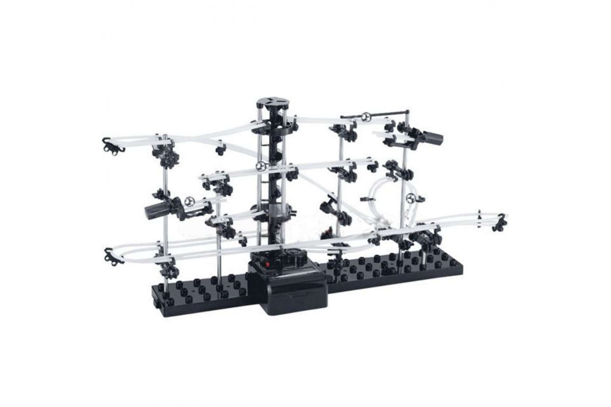 Продолжительность сборки – около трех часов. Итог кропотливой работы порадует своим внешним видом и своих хозяев, и гостей дома, где размещена композиция. Не требуя специального выставочного пространства, сооружение обязательно станет одним из композиционных центров оформления комнаты, привлекая взгляды непрекращающимися перемещениями стальных шариков по рельсам из белоснежных полиэтиленовых трубок. Работа с конструктором способствует развитию пространственного мышления, способности решать различные инженерные задачи, она хороша и в качестве хобби для взрослого, и как тренировка для подростка. Уровень сложности – 2.