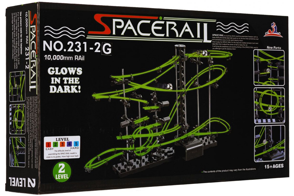 Динамический конструктор Космические горки, светящиеся рельсы, уровень 2 - 231-2G - это конструктор "Space Rail Glow In The Dark" представляет собой отличную пространственную головоломку, которая увлечет всю семью от мала до велика! Процесс сборки доставит удовольствие и детям, и родителям, а запуск космической трассы приведет всех в восторг. Вы сможете построить захватывающие дороги общей длиной до 10 метров и сами задать траектории, по которым стремительно будут проноситься металлические шарики. Удивительной особенностью конструкции является то, что рельсовое полотно светится в темноте мягким зеленым светом, делая модель еще более эффектной. Это интереснейший аттракцион, напоминающий "американские горки", за которым можно наблюдать часами. Комплект включает элементы для сборки модели, 2 металлических шарика и схематичную инструкцию, которая позволит собрать конструкцию правильно и быстро.
