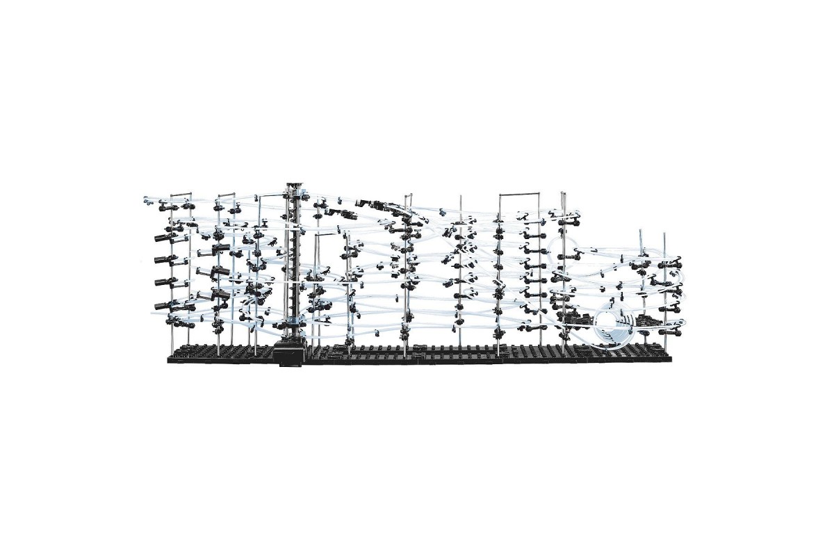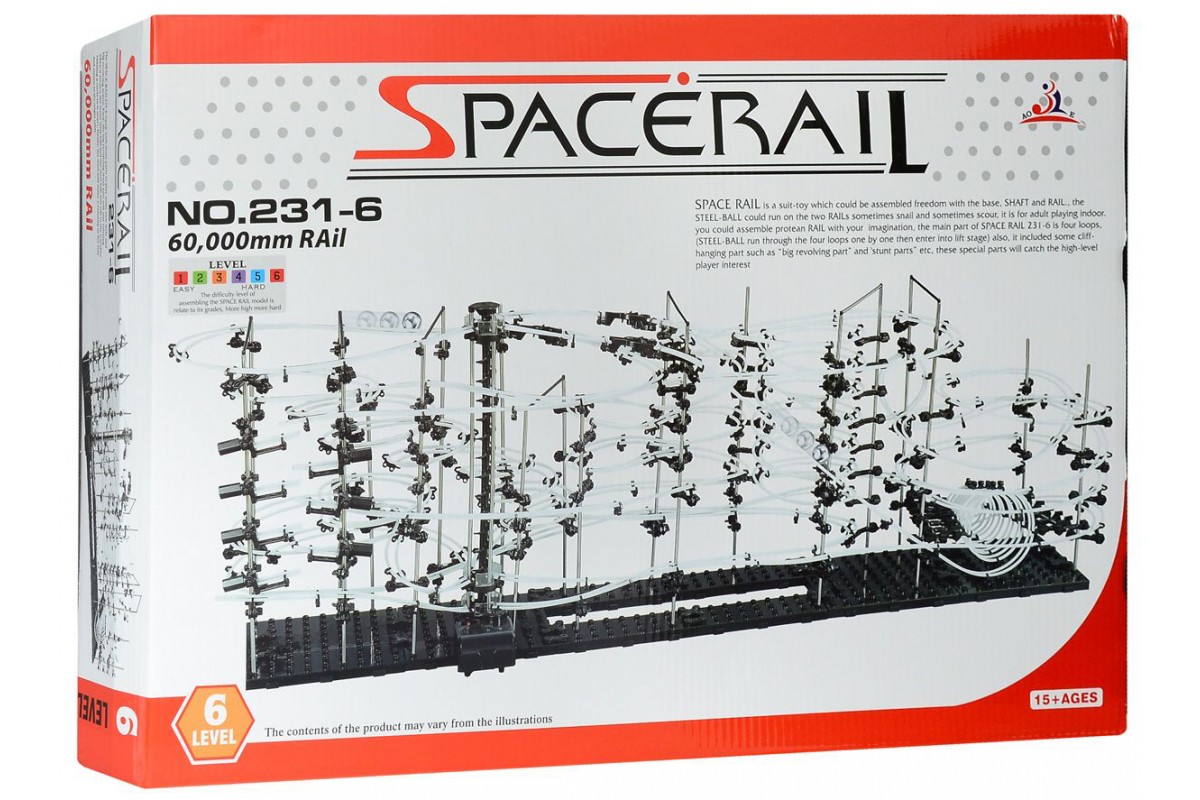В чем смысл? Из идущих в комплекте запчастей нужно собрать хитрую конструкцию, по которой будут носится металлические шарики. Количество запчастей, шариков, длина рельс, сложность отдельных элементов зависит от уровня конструктора. Вы можете собрать конструкцию по инструкции, либо придумать свою, ограничений только два - это ваша фантазия и количество запчастей. Наборы полностью совместимы, имея в наличии разные уровни можно их объединить и собрать что-нибудь очень большое.