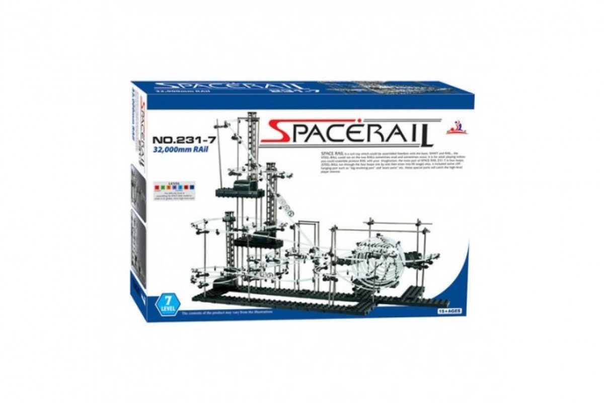 SpaceRail Level 7 – комплект содержит 32 метров рельс, 15 пластин основы (20х6,5 см), три лифта для шариков и примерно 840 других деталей. В собранном виде конструктор «Спейс реил» 7 уровня занимает приблизительно: длина - 150 см, ширина - 80 см, высота - 80 см. В коробке с конструктором предусмотрена англо-китайская инструкция, с большим количеством подробных фотографий. После сборки «космических горок» понадобиться время на отладку сопряжений рельс и других деталей, для того чтобы шарики скользили без остановок.