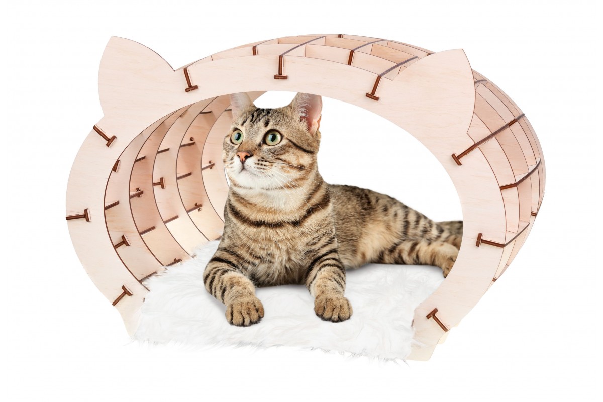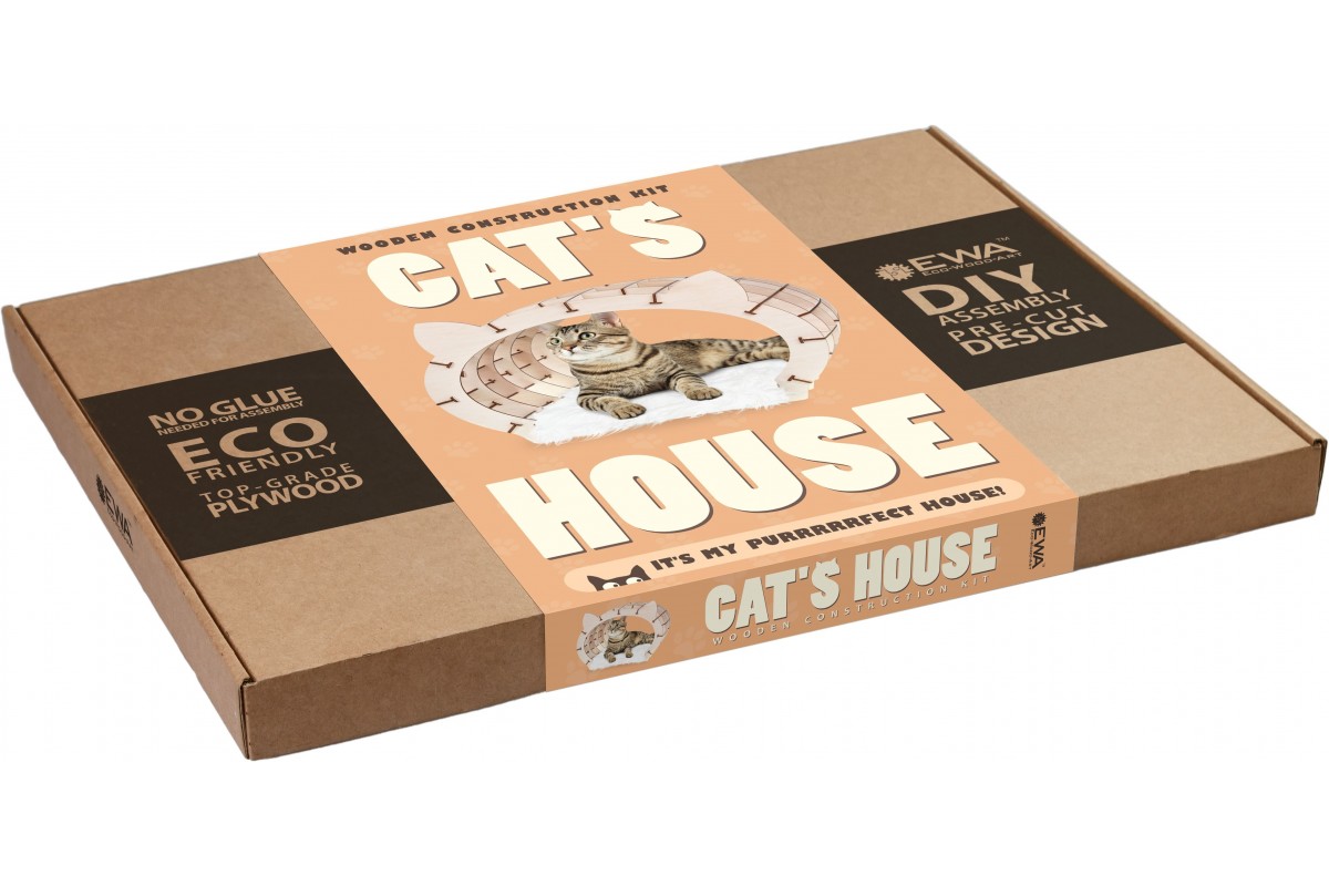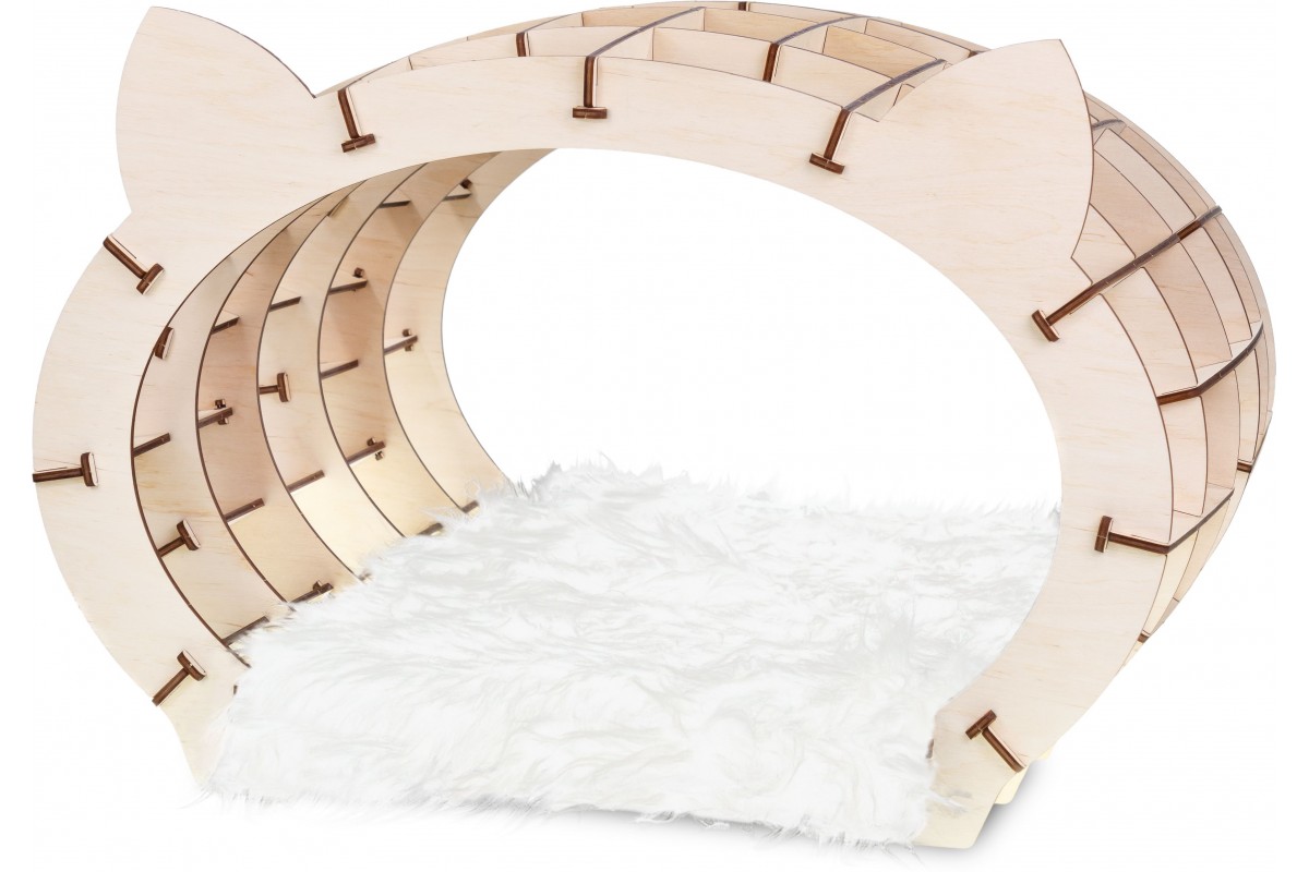 Конструктор деревянного Домика для домашних животных, лежанка с мехом EWA "Кошкин дом". Создайте уют своему любимому питомцу. Сборная модель подходит и для собак небольших пород и другим некрупным животным.