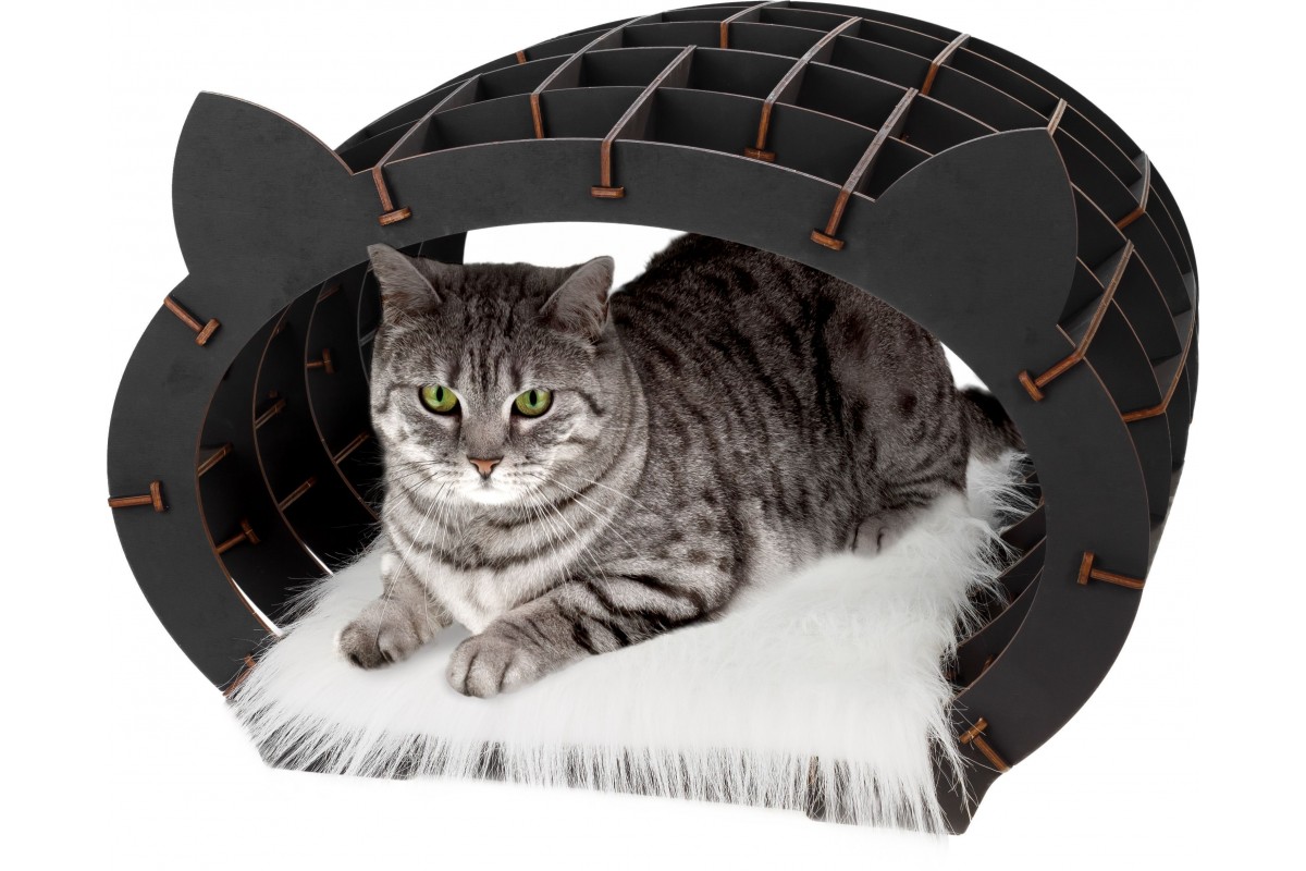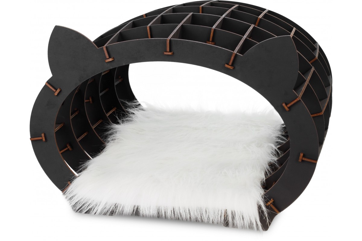 Домик для домашних животных, лежанка с мехом EWA "Кошкин дом" белый каркас-черный мех