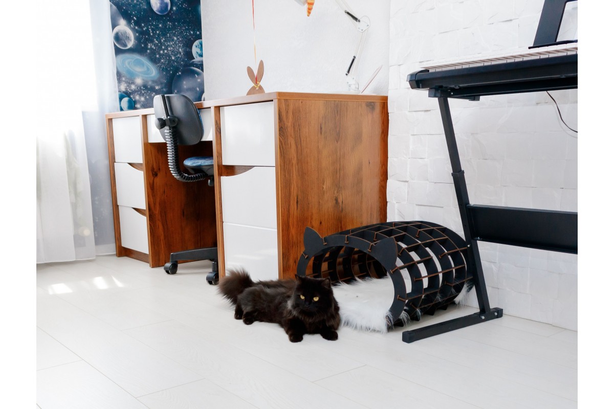 Конструктор деревянного Домика для домашних животных, лежанка с мехом EWA "Кошкин дом". Создайте уют своему любимому питомцу. Сборная модель подходит и для собак небольших пород и другим некрупным животным.