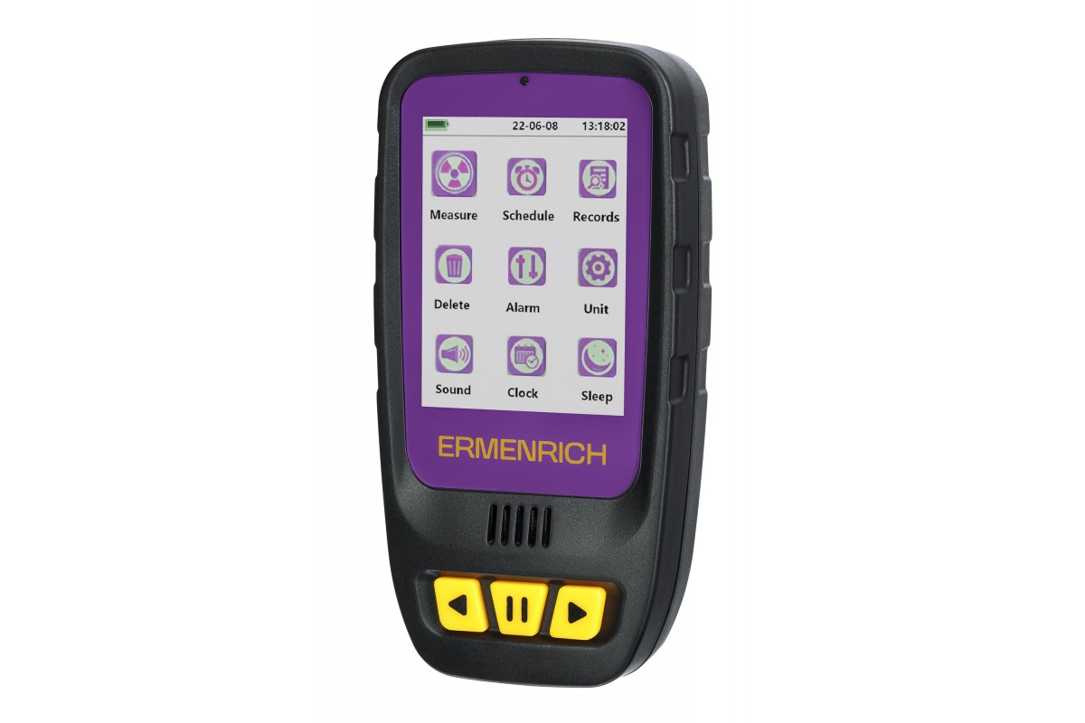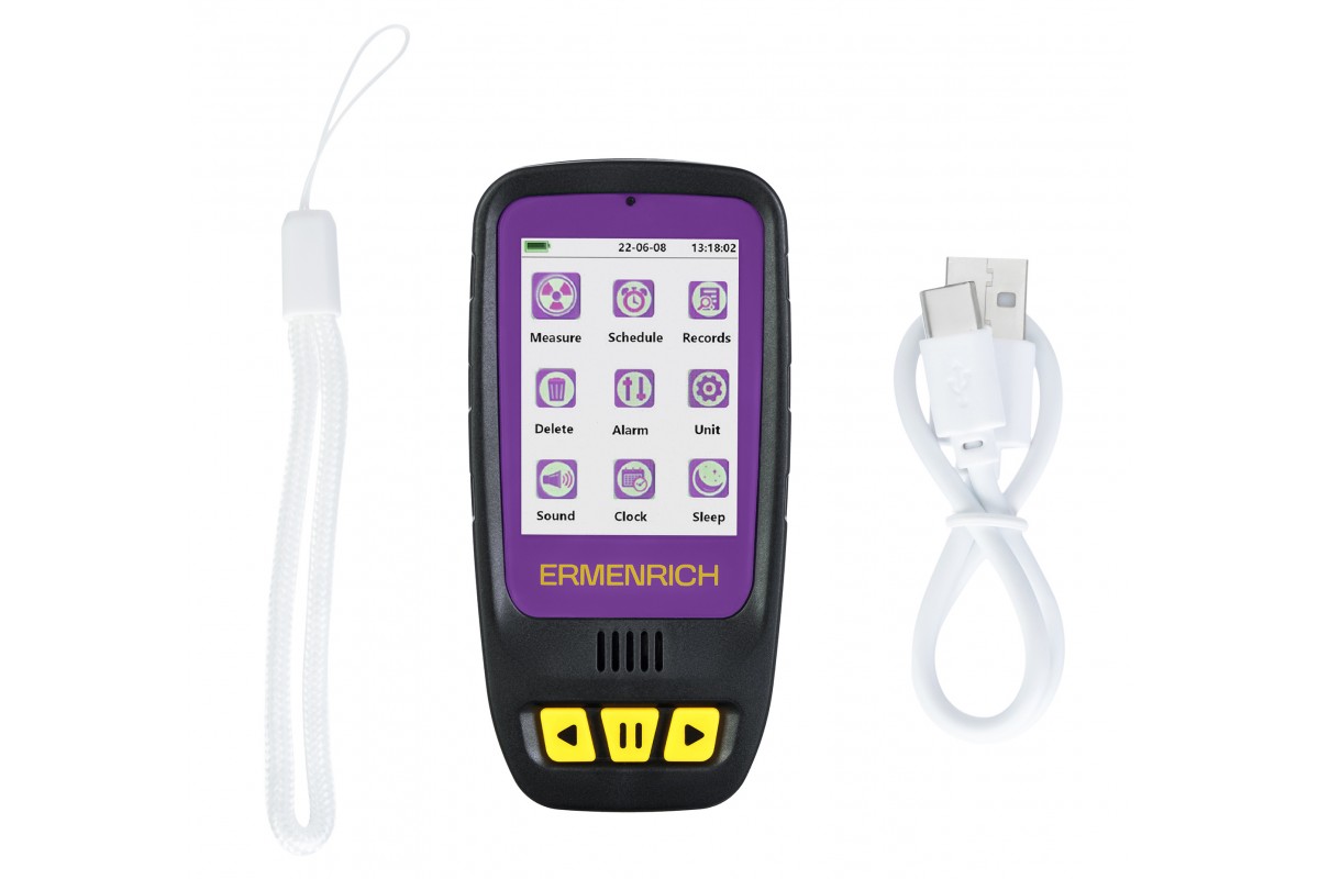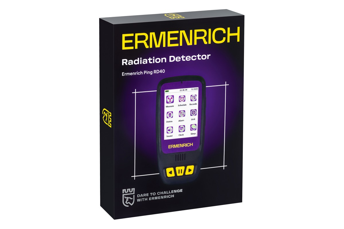 Дозиметр Ermenrich Ping RD40 измеряет гамма-, бета- и рентгеновское излучение в окружающей среде – воздухе, воде, продуктах питания, предметах обихода. Счетчик Гейгера-Мюллера считывает уровень излучения в диапазоне от 0,08 мкЗв до 50 мЗв меньше, чем за 10 секунд, а в случае опасно повышенной дозы – подает звуковой или световой сигнал.