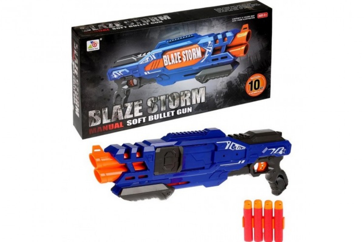 Дробовик бластер BlazeStorm с мягкими МЕГАпулями (двойной выстрел) - ZC7111 - это механический дробовик с мягкими пулями (большие красные). Двойной выстрел. Есть крепление для 4-х дополнительных боеприпасов.