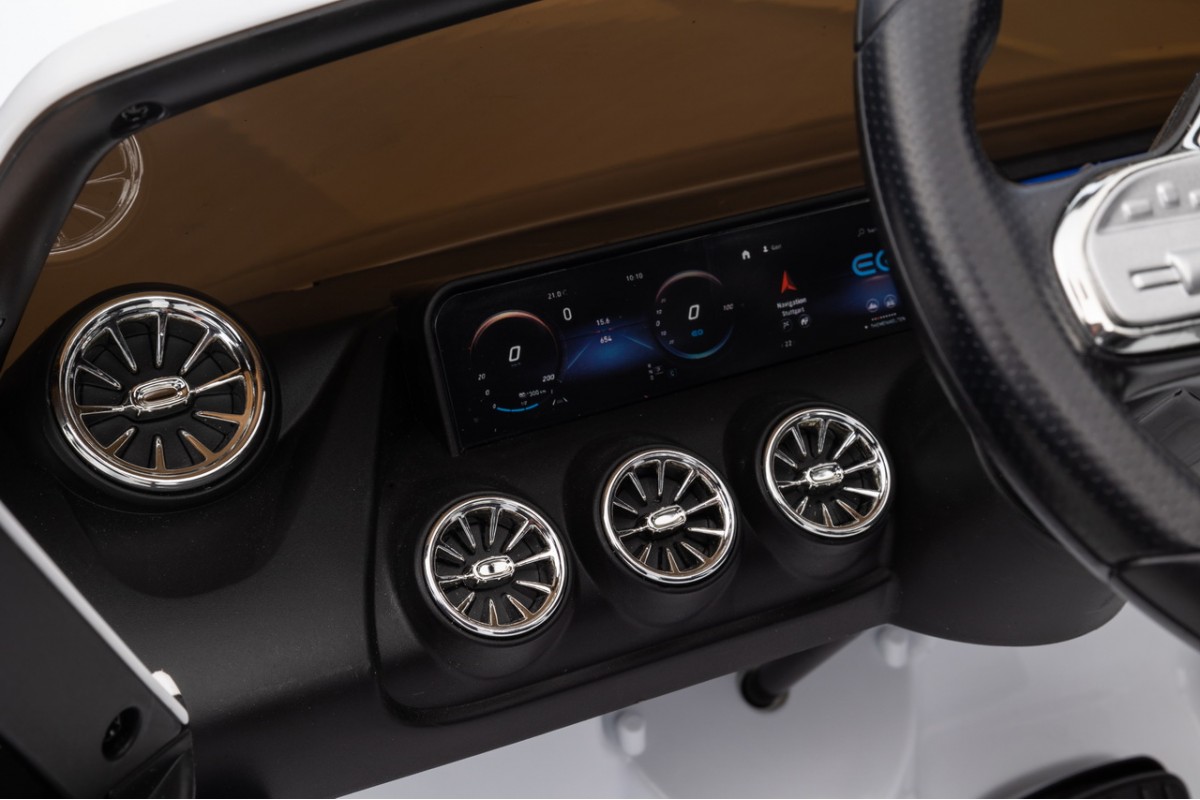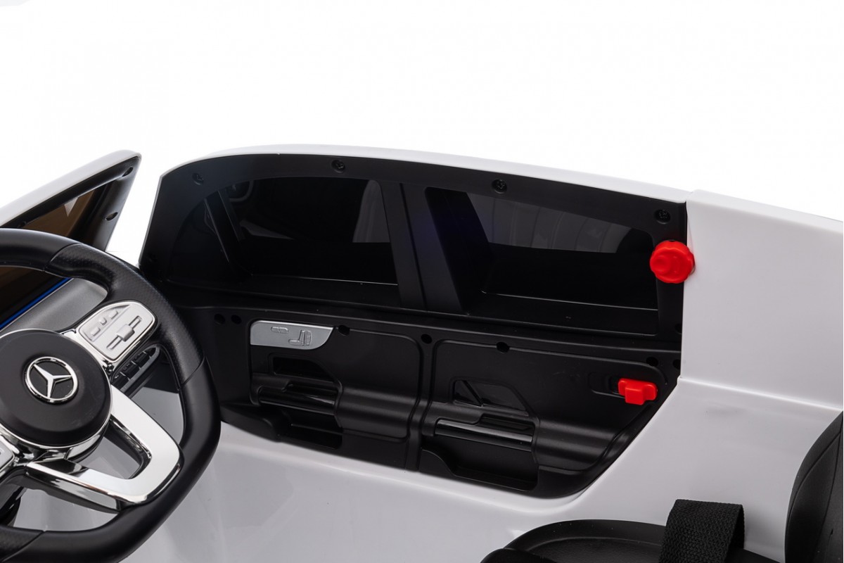 - открываются двери, кожаное сиденье с ремнями безопасности