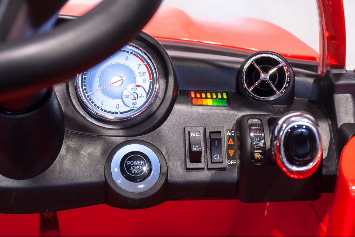 - заводится с кнопки, на торпеде переключатель управления пульт/педаль, индикатор заряда батареи