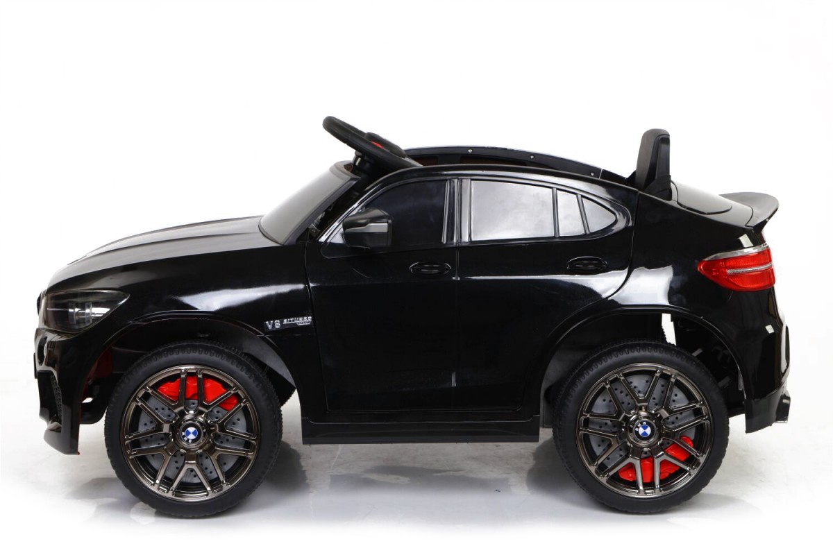 Электромобиль BMW X6M 12V (полный привод, EVA) - FT-968-BLACK-PAINT - это модель электромобиля BMW X6M с дистанционным управлением и приводом на все четыре колеса. Максимальная комплектация, представленная на нашем сайте включает мягкое кожаное кресло, каучуковые колеса, ремень безопасности, музыкальные и световые эффекты, функция качалки, а так же уже полюбившаяся функция ручка- чемодан для удобства транспортировки модели.