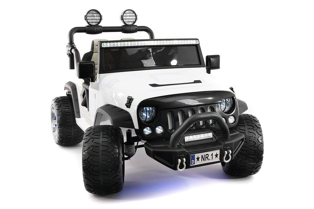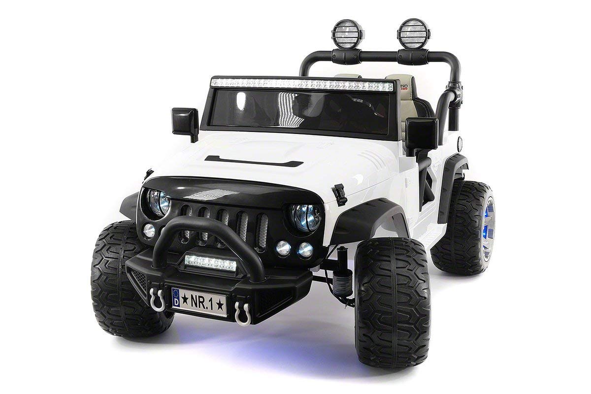 Электромобиль Jeep Wrangler White 2WD - SX1718-S - это детский двухместный электромобиль, который выделяется оригинальным дизайном и эксклюзивными опциями. Здесь предусмотрена регулировка кресел, электрический усилитель руля с автоматическим возвратом колёс в исходное положение, открывающиеся двери, капот, быстросъёмный аккумулятор, светодиодные огни и подсветка, привлекающие маленьких путешественников.