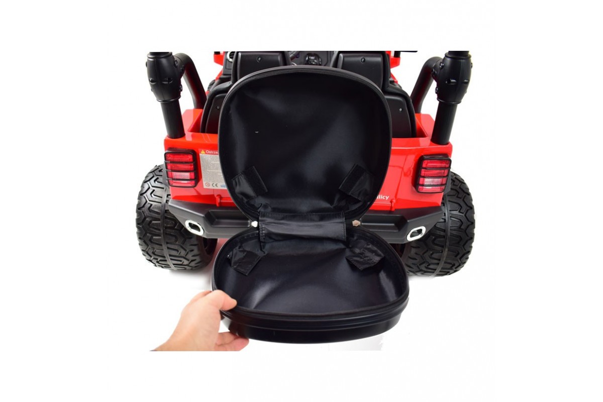 - Система работает от аккумулятора 12V 10Ah, расположенном под капотом в специальном боксе, который защищает батарею от проникновения детей, позволяет её быстро снять и заряжать отдельно от электромобиля.