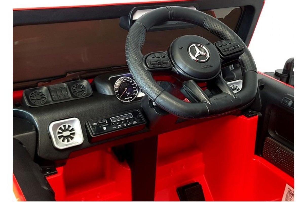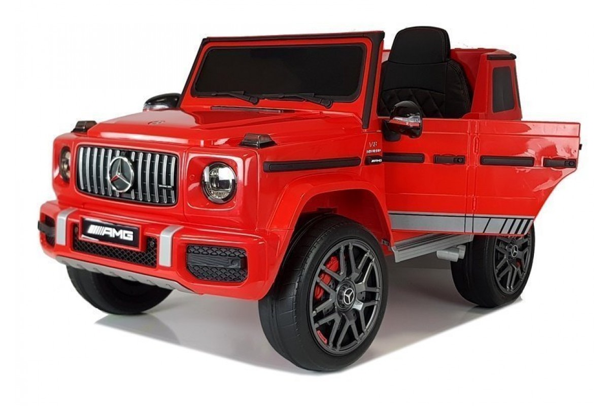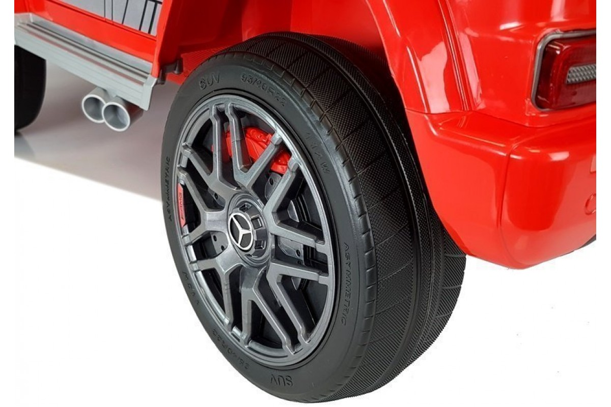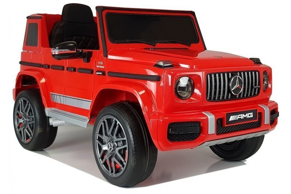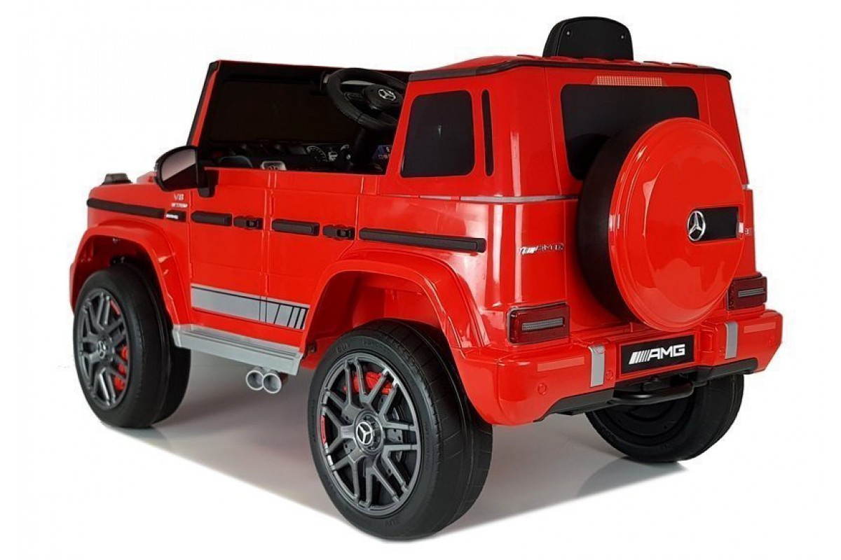 Электромобиль Mercedes-Benz G63 – это компактный, маневренный и проходимый детский транспорт. Он легко перемещается по асфальтированному и бетонному покрытию, траве и грунтовой дороге. Визуально модель в точности повторяет оригинал – знаменитый джип «Гелендваген». Вместительный и комфортный салон, два мощных мотора, резиновые колеса и автоматическая коробка передач делают эту модель аристократом в мире игрушечного транспорта.