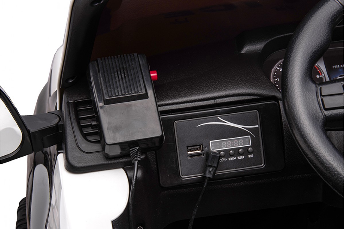 Электромобиль Toyota Hilux Police 4WD 12V - DK-HL860P-WHITE - это лицензионная копия взрослого автомобиля Тойота Хайлюкс последнего поколения, TOYOTA HILUX DK-HL860, выполненный с большим вниманием к деталям и оснащенный фирменными логотипами, а также широким функционалом. Кузов выполнен ввиде полицейского джипа, который непременно понравится юным водителям.Под капотом четыре мотора суммарной мощностью 140 Ватт и два ёмких аккумулятора по 12 вольт, позволяющие длительно, без подзарядки, гонять на скорости 5 км/ч. Как и во взрослом авто здесь есть настоящая автомагнитола с сенсорным экраном и USB, TF, AUX разъемами, TOYOTA HILUX DK-HL860, а также Bluetooth, багажник, капот и двери открываются, фары и фонари оснащены светодиодной подсветкой. Для комфорта маленького водителя и его пассажира электромобиль укомплектован мягкими кожаными креслами с ремнями безопасности, амортизаторы на задних колесах сгладят неровности дороги.