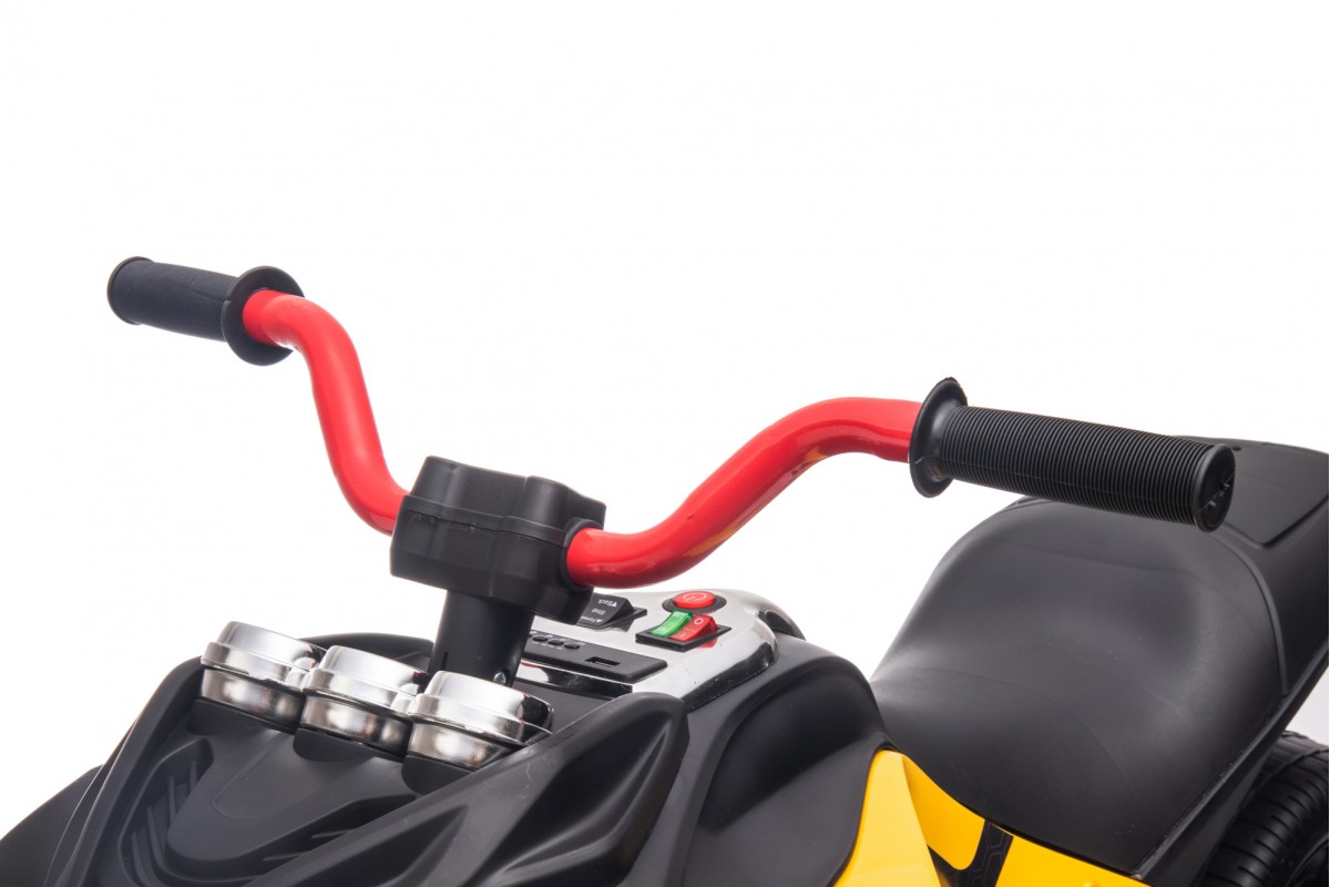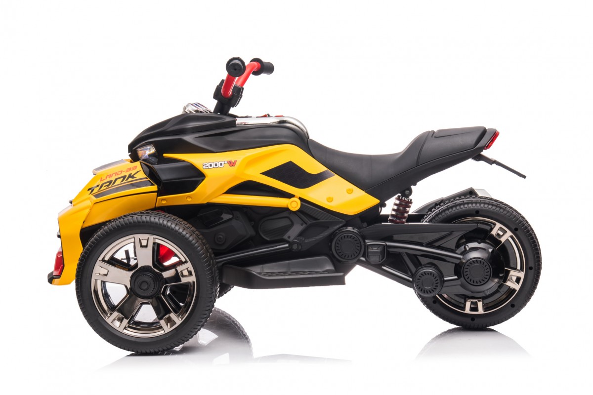 >для детей от 3 лет, двухместный - один аккумулятор: 12V/10Ah - два двигателя по 35W - задний привод - макс нагрузка: 30 кг - резиновые колеса EVA - задние и передние амортизаторы - макс скорость: 7 км/ч - две скорости вперёд, одна скорость движения назад - педаль газа - заводится с кнопки - кожаное сиденье - удобный руль - музыкальные эффекты на приборной панели - разъем для подключения USB - светодиодные огни передних и задних фонарей - в комплекте: аккумулятор, зарядное устройство гарантия: 6 месяцев
