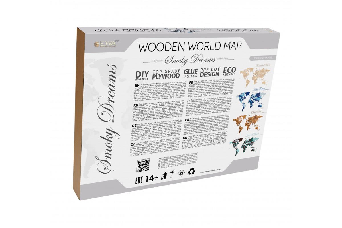 Это красивая карта мира идеально подойдет для любого дома или офиса. Размещая дерево на стену вы добавляете уют в комнату. Карта мира настенная имеет три уровня (слоя), что ее настоящим украшением интерьера, выглядит как объемная карта. Крепится карта мира на стену с помощью двустороннего скотча, который идет в комплекте. На карте мира выделены границы всех стран, например Россия. Карта деревянная окрашена в экологичную и безопасную краску. Сборка производится с помощью клея. Наша карта не является скретч картой, но вы можете использовать наклейки или кнопки, чтобы отметить, какие страны уже посетили.