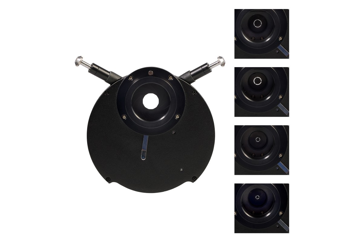 • Пять позиций в поворотном устройстве конденсора, в том числе одно для светлого поля