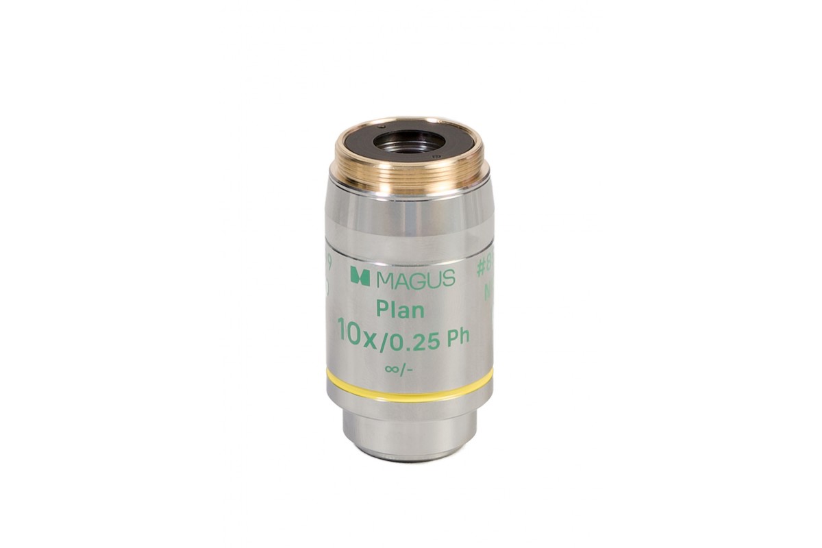 • Объектив фазовый планахромат, рассчитанный на бесконечность: Plan 10x/0,25 Ph ∞/- WD 10,2 мм, парфокальная высота 60 мм