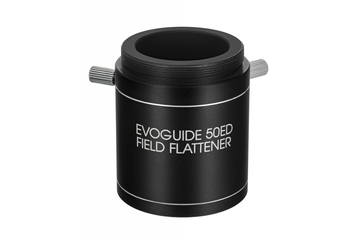 Аксессуар подходит для использования с фотоаппаратами с сенсором формата APS-C и полем изображения объектива диаметром 28 мм; поле зрения в градусах при этом составит 5,33х3,57. Он устанавливается вместо удлинительной трубки на телескоп Sky-Watcher Evoguide 50ED. С противоположной стороны, при помощи резьбового соединения Т2, к флаттенеру прикрепляется камера. В аксессуаре также предусмотрено крепление стандарта 1,25" для окуляра. Бэк-фокус составляет 17,5 мм, что делает это устройство подходящим для использования с большинством популярных гидирующих и астрономических камер.