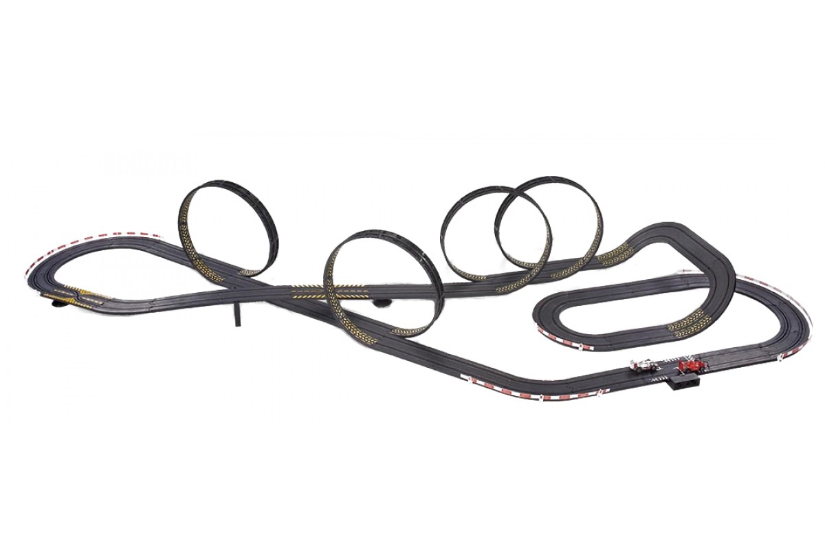 Кольцевая трасса с крутыми поворотами, трековой петлей и двумя гоночными машинками сможет увлекательно разнообразить досуг детей, в нее можно играть в компании друзей или родителей. Ваш ребенок сможет соревноваться со своим другом благодаря тому, что в набор входит два болида, выполненных в масштабе 1:64, а из входящих в набор деталей можно построить различные трассы. Максимальная длина построенного полотна достигает 1114 см.