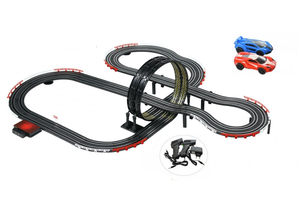 Кольцевая трасса с крутыми поворотами, трековой петлей и двумя гоночными машинками сможет увлекательно разнообразить досуг детей, в нее можно играть в компании друзей или родителей.