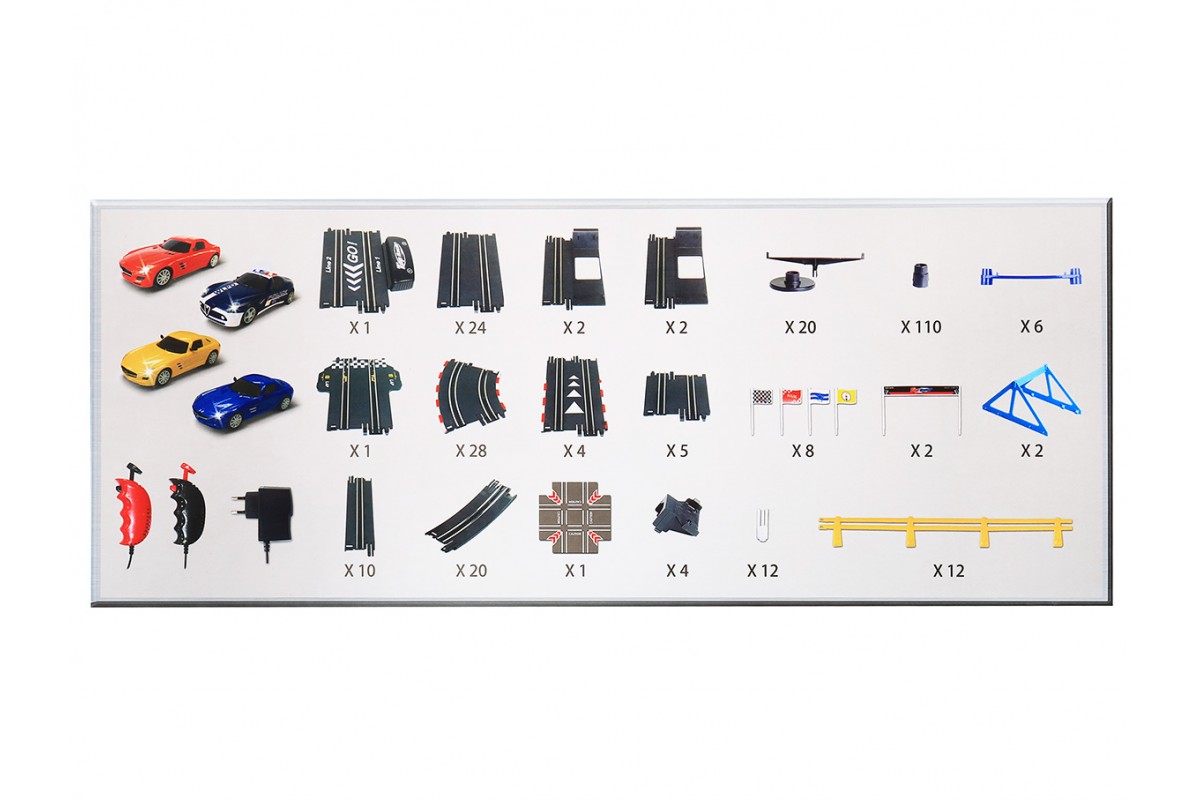 Гоночный автотрек от сети Merсedes SLS 1:43 (4 машинки, 13.5 метров) - TR-09L - это отличный подарок любому мальчишке! Все элементы легко собираются между собой. Игрушка способствует развитию моторики, сенсорного восприятия и воображения.