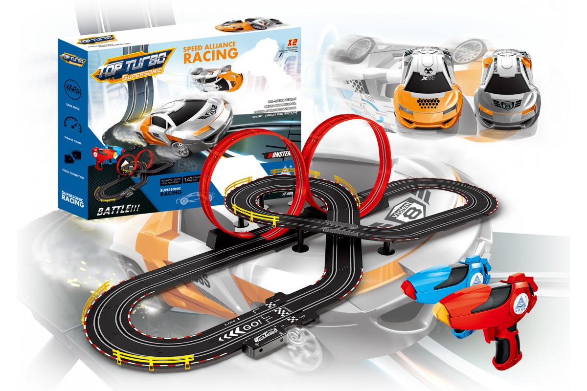 Гоночный автотрек Soba (740 см, 2 машинки на пульте, питание от сети, 27 MHz) - SOBA-A47-9 - это гоночная трасса длиной 7.4 метра от компании SOBA. Теперь играть стало еще веселее, а гонки станут главной игрой для юных ребят.Теперь играть стало еще веселее, а перегонки станут главной игрой для юных ребят. Особенность данной модели в том, что только вы задаете скорость движения машинки. На поворотах нужно притормаживать, чтобы не вылететь за пределы трассы. Когда машинка приближается к петле - нужно максимально ускориться - чтобы успешно преодолеть этот участок трассы. В общем, все как в настоящих гонках. Управление происходит с помощью беспроводного пульта. Самое главное, что играть и соревноваться на треке можно вдвоем.