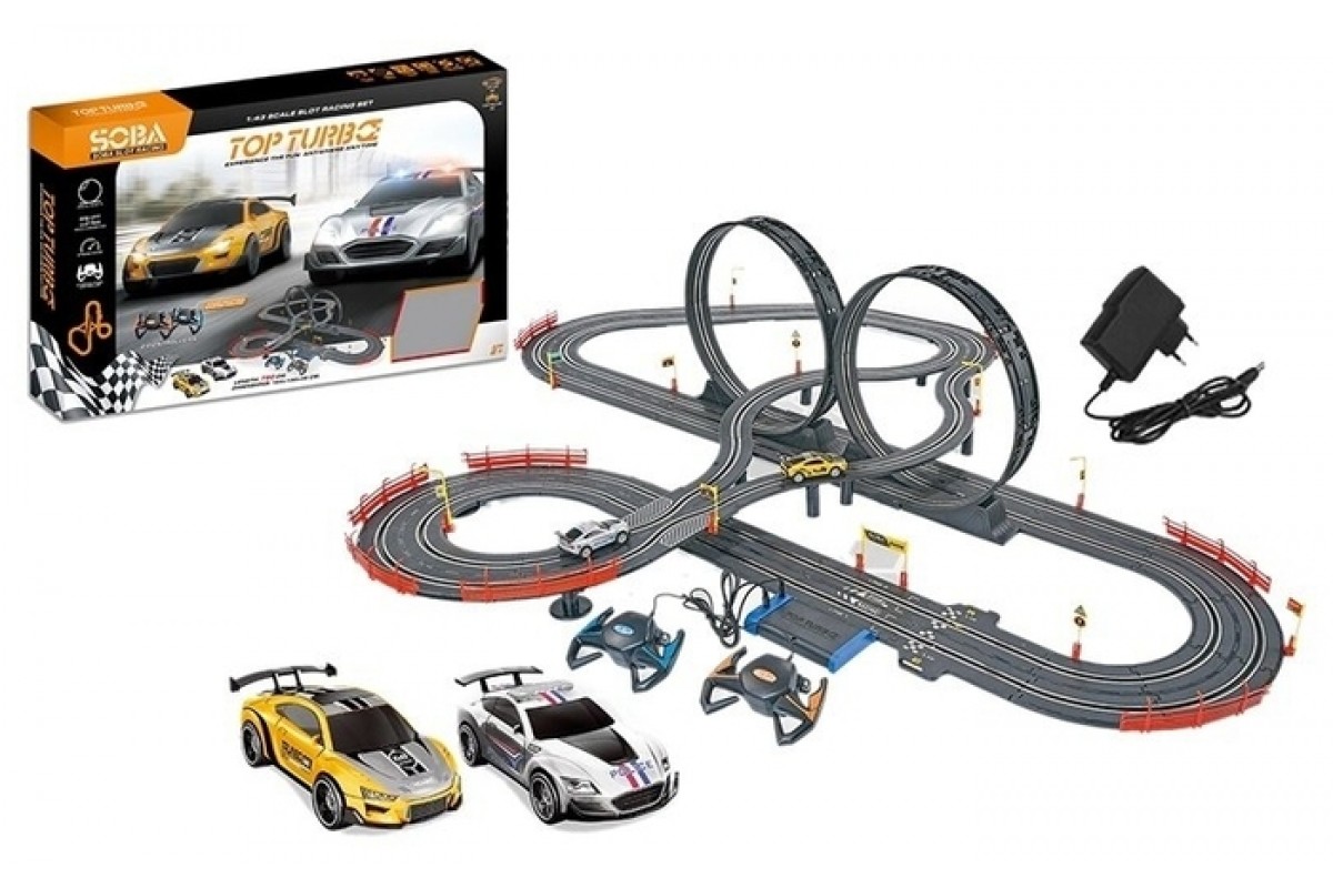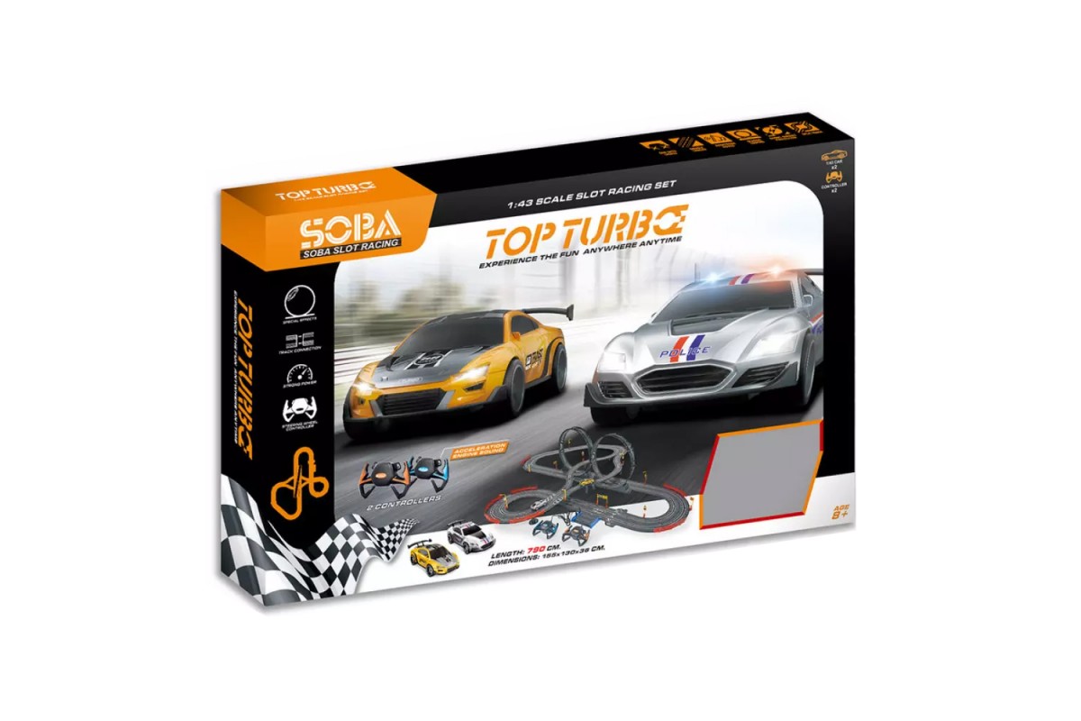 Гоночный автотрек Soba (790 см, 2 машинки на пульте, работает от сети и батареек) - SOBA-A49-10A - это превосходная находка для любителей головокружительных трюков и экстремального вождения. Великолепный набор позволит мальчику почувствовать себя настоящим гонщиком.