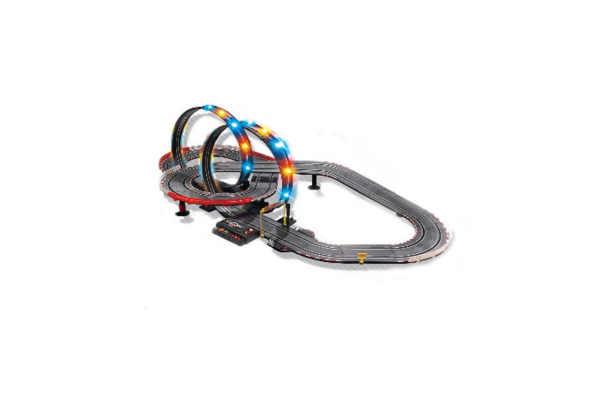 Гоночный трек с двумя машинками - возможность весело провести время, устроить заезд с другом или папой. Машинки движутся по треку тем быстрее, чем сильнее соперники нажимают ручки генераторов тока, игра сопровождается реалистичным звуком.