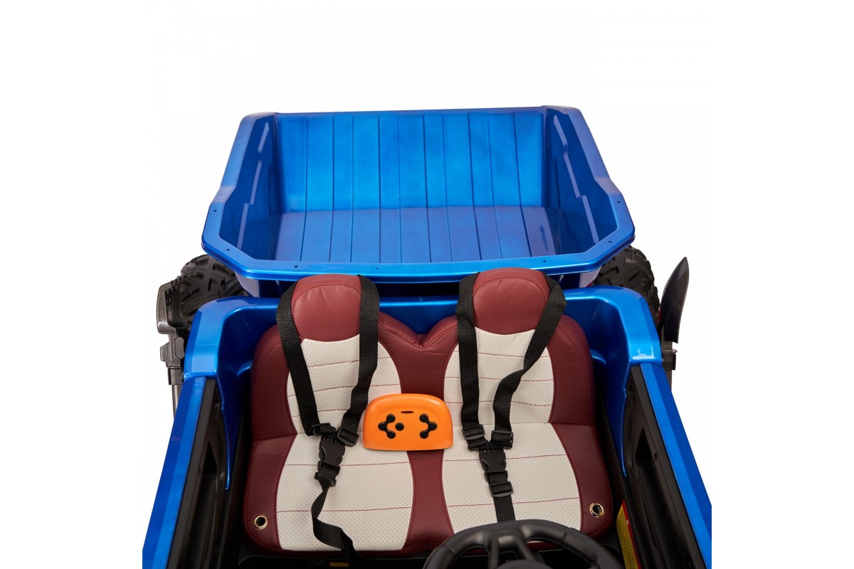 - максимальная скорость 6 км/ч, 2 скорости вперед, одна скорость движения назад (переключение скоростей - с пульта ДУ или плавный набор скорости с помощью педали)