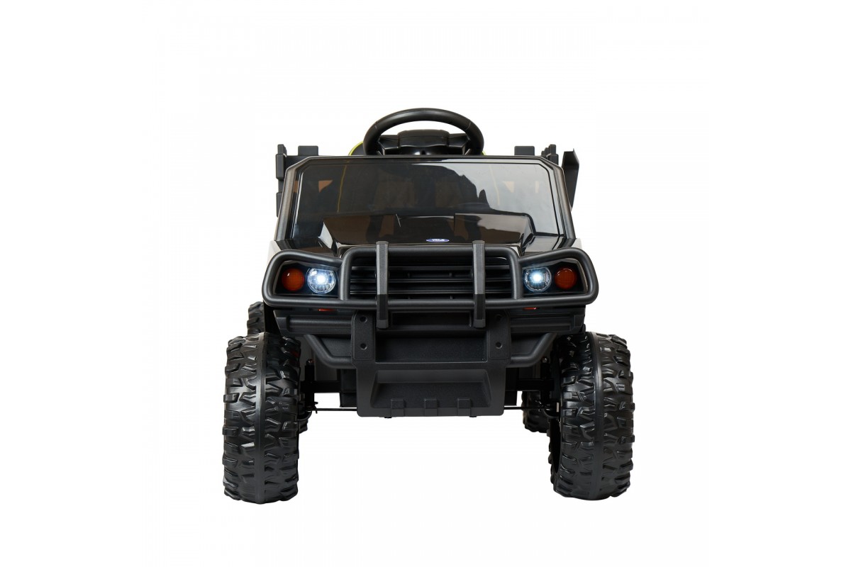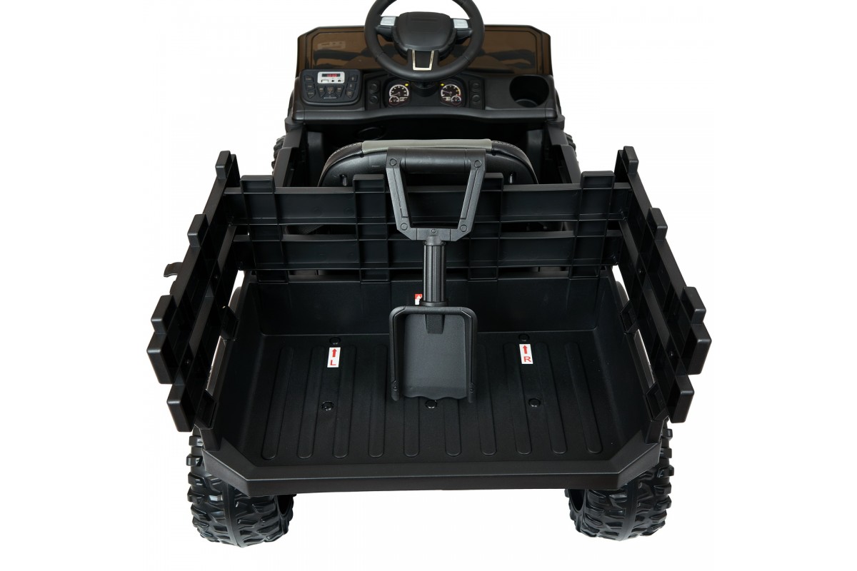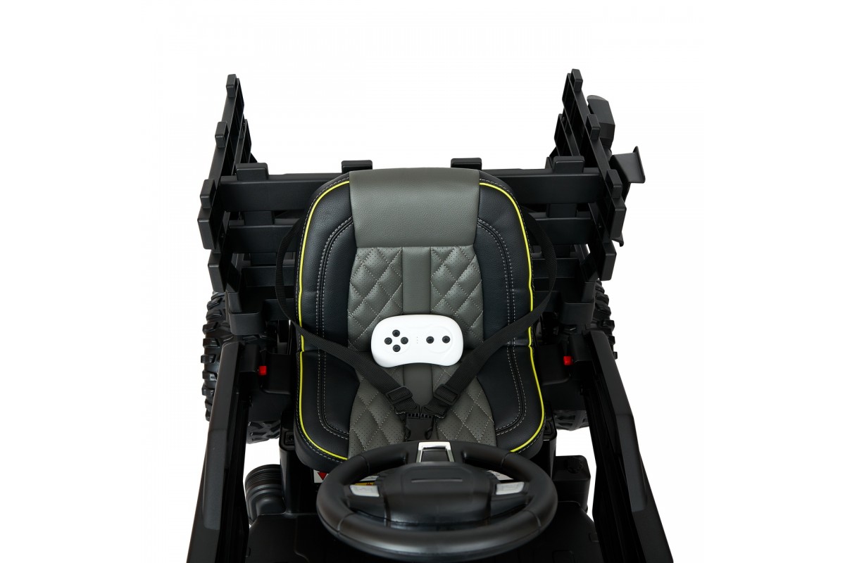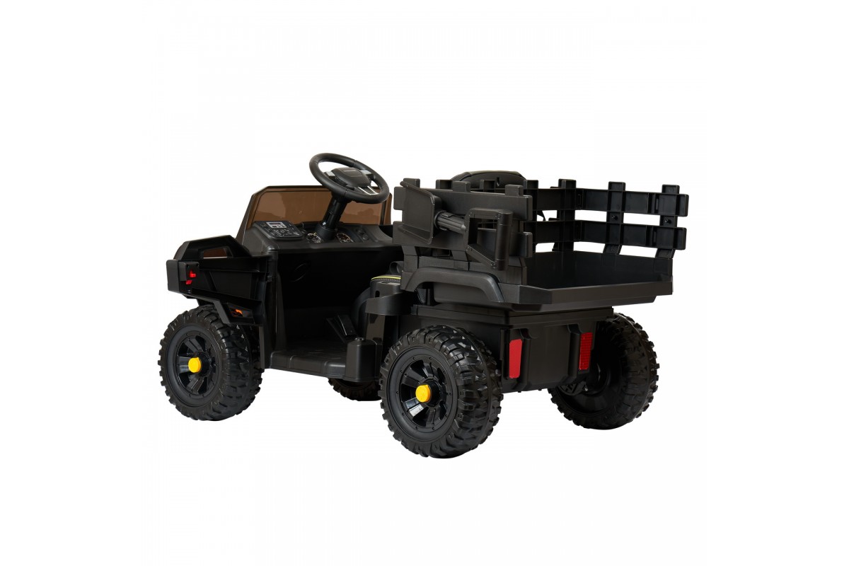 - максимальная скорость 5,5 км/ч, 2 скорости вперед, одна скорость движения назад (переключение скоростей - с пульта ДУ или плавный набор скорости с помощью педали)