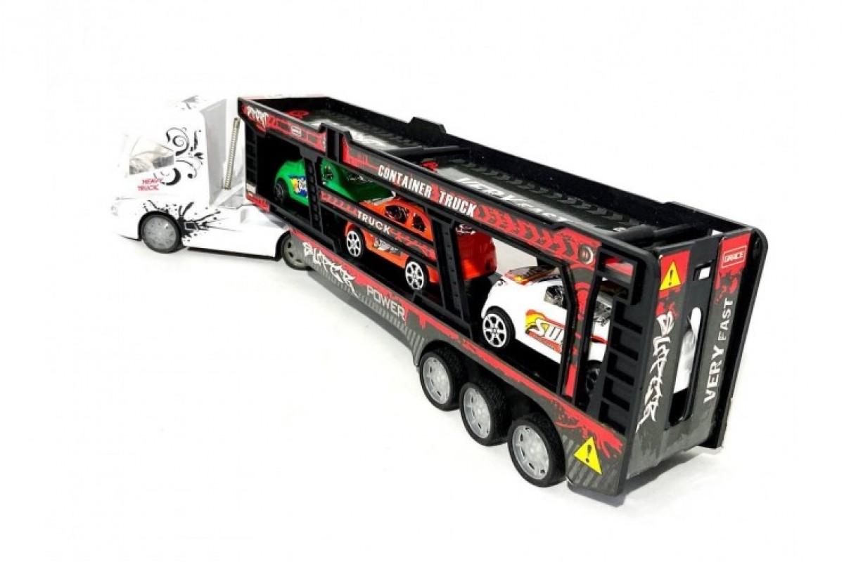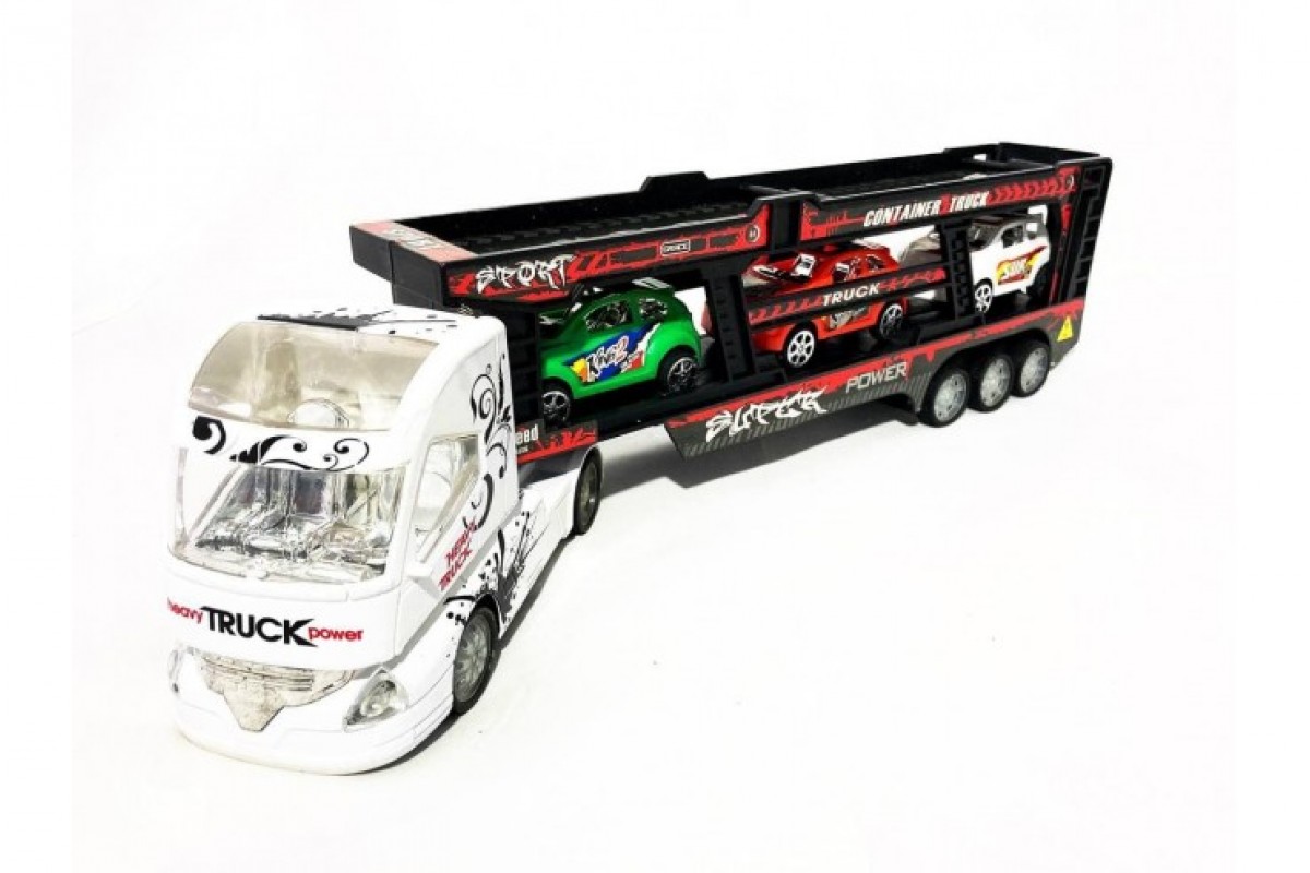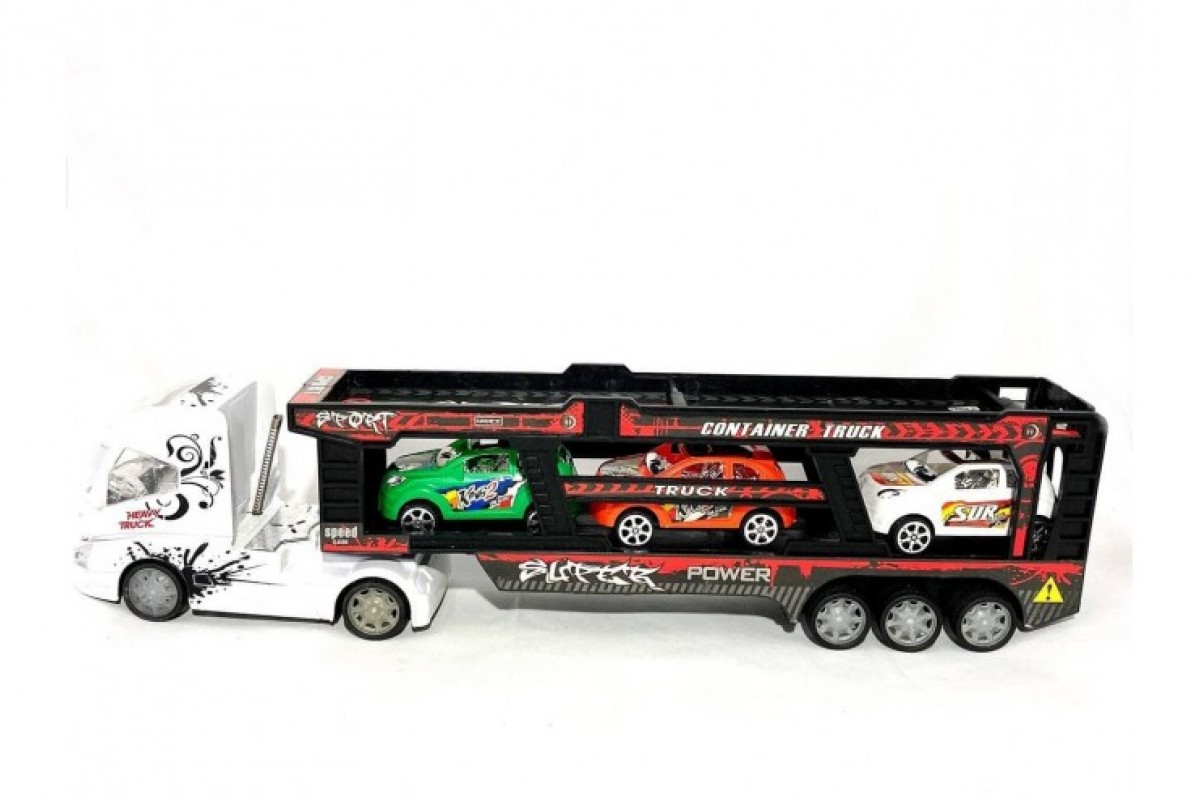 Радиоуправляемый трейлер c машинками станет прекрасным дополнением к коллекции автомобилей Вашего малыша. С такой игрушкой можно устраивать разнообразные увлекательные игры, она позволит составить настоящий город транспортной техники. Радиоуправляемый трейлер состоит из тягача и прицепа, изготовлен из безопасных материалов.