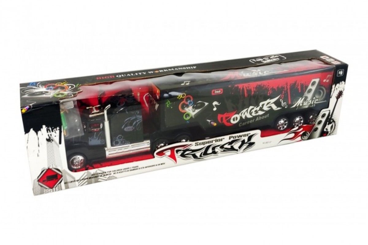 Направления движения: вперед, назад, повороты влево и вправо Прицеп можно пристегивать и отстегивать Подсветка грузовика Масштаб 1:32