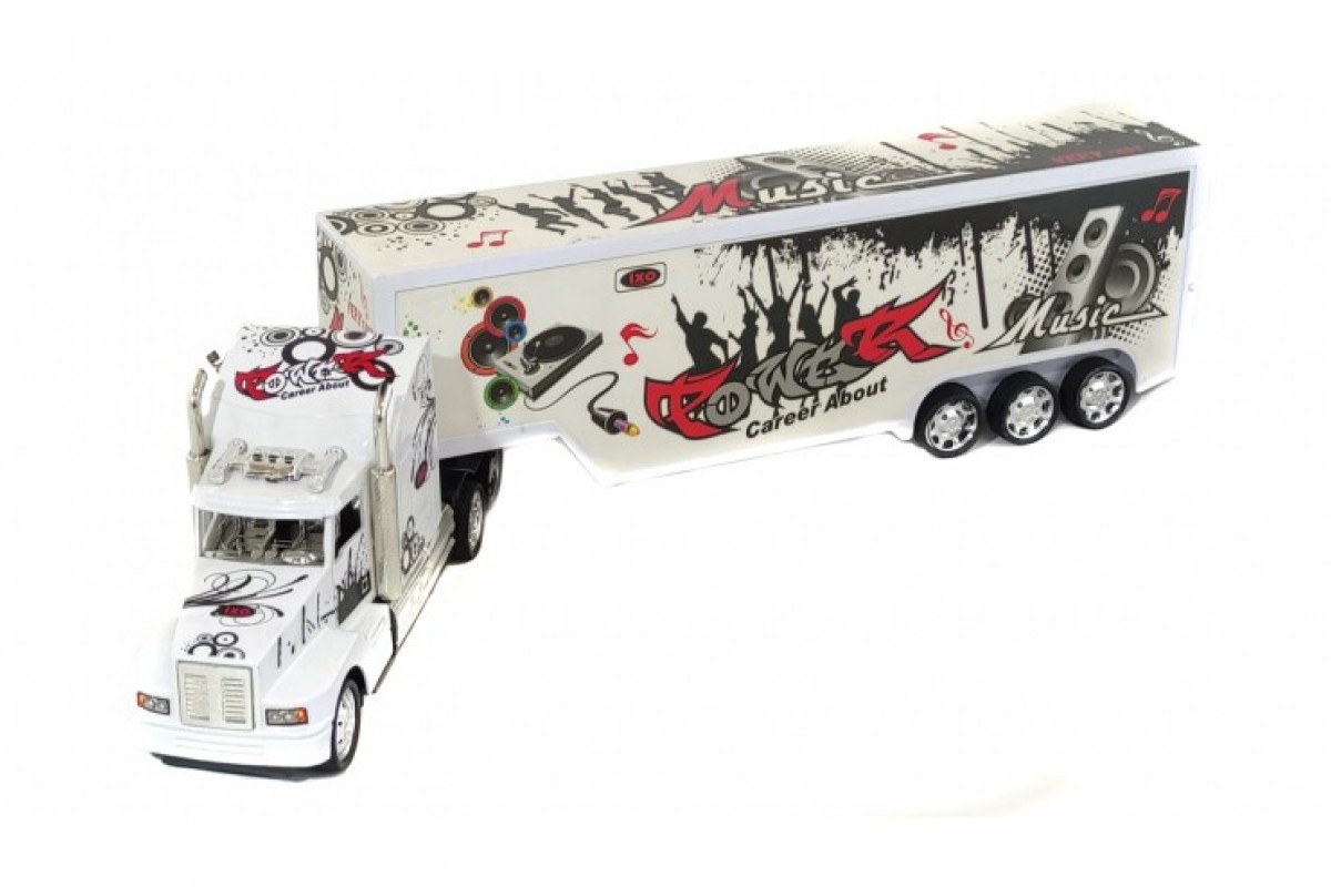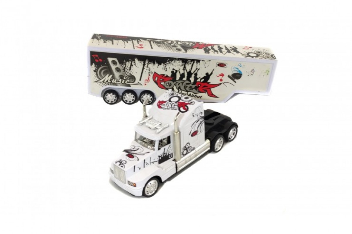 Направления движения: вперед, назад, повороты влево и вправо Прицеп можно пристегивать и отстегивать Подсветка грузовика Масштаб 1:32