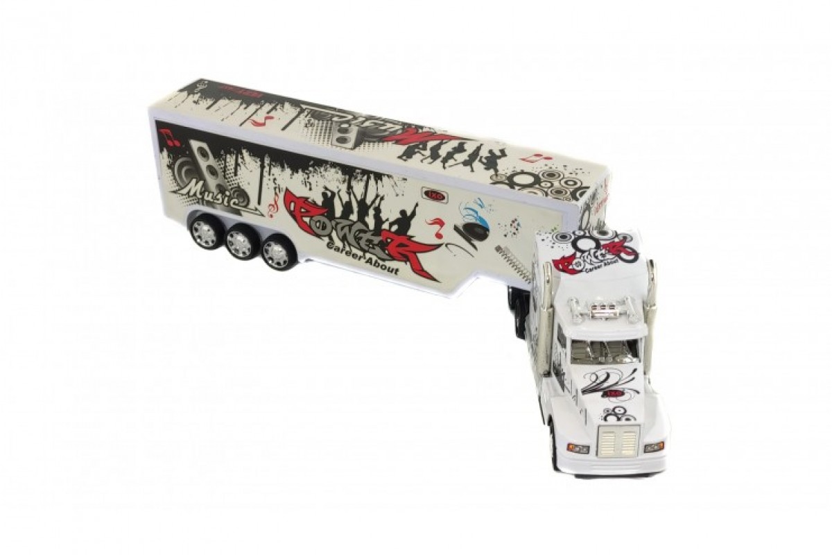 Особенностью трейлера является то, что при желании можно легко отцепить прицеп. Яркое оформление сделает игру незабываемой. Машинка двигается за счет пульта дистанционного управления. Возможности движения - вперед, назад, стоп, вправо и влево. Захватывающая игра с такой игрушкой развлечет ребенка, станет стимулом к развитию ловкости и слаженности движений рук, сноровки и координации, будет развивать мелкую моторику, заставит двигаться и фантазировать, поможет малышу в развитии внимания. Радиоуправляемый трейлер подарит массу положительных эмоций Вашему ребенку и Вам. Простота в управлении позволит быстро освоиться.