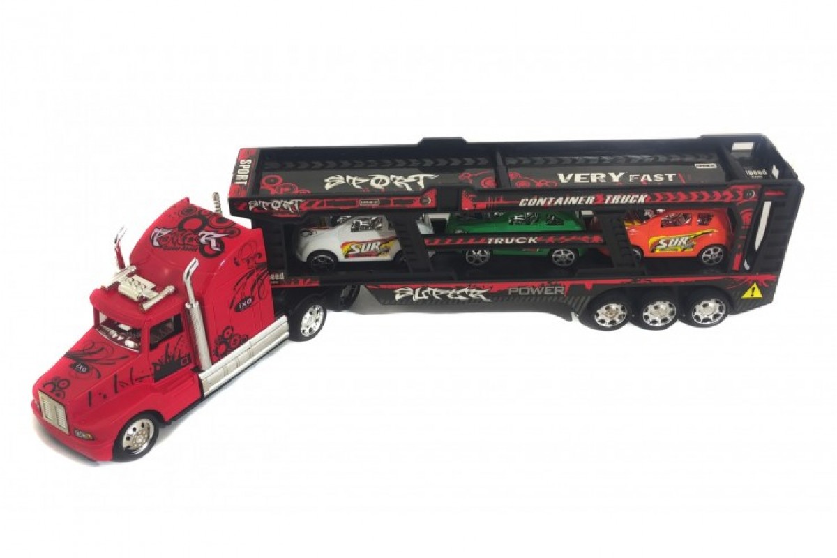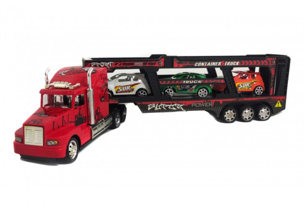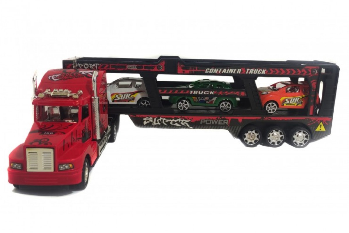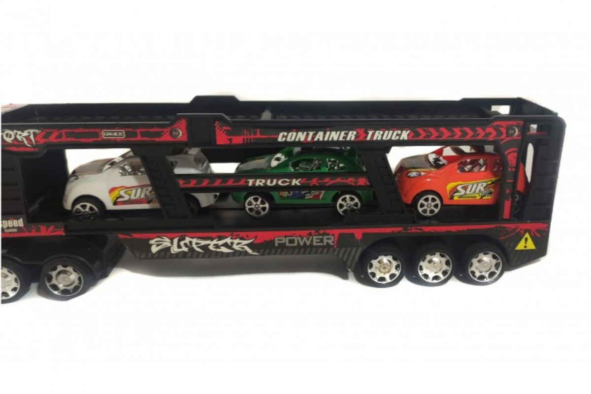 Радиоуправляемый трейлер с машинками станет прекрасным дополнением к коллекции автомобилей Вашего малыша. С такой игрушкой можно устраивать разнообразные увлекательные игры, она позволит составить настоящий город транспортной техники. Радиоуправляемый трейлер состоит из тягача и прицепа, изготовлен из безопасных материалов.