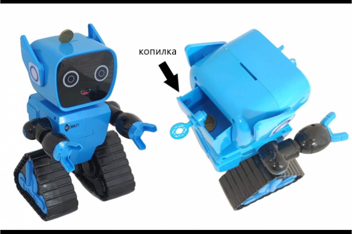 Также он умеет рассказывать истории, петь, его можно использовать как копилку (ключ в комплекте), а также переносить различные предметы (поднос в комплекте).