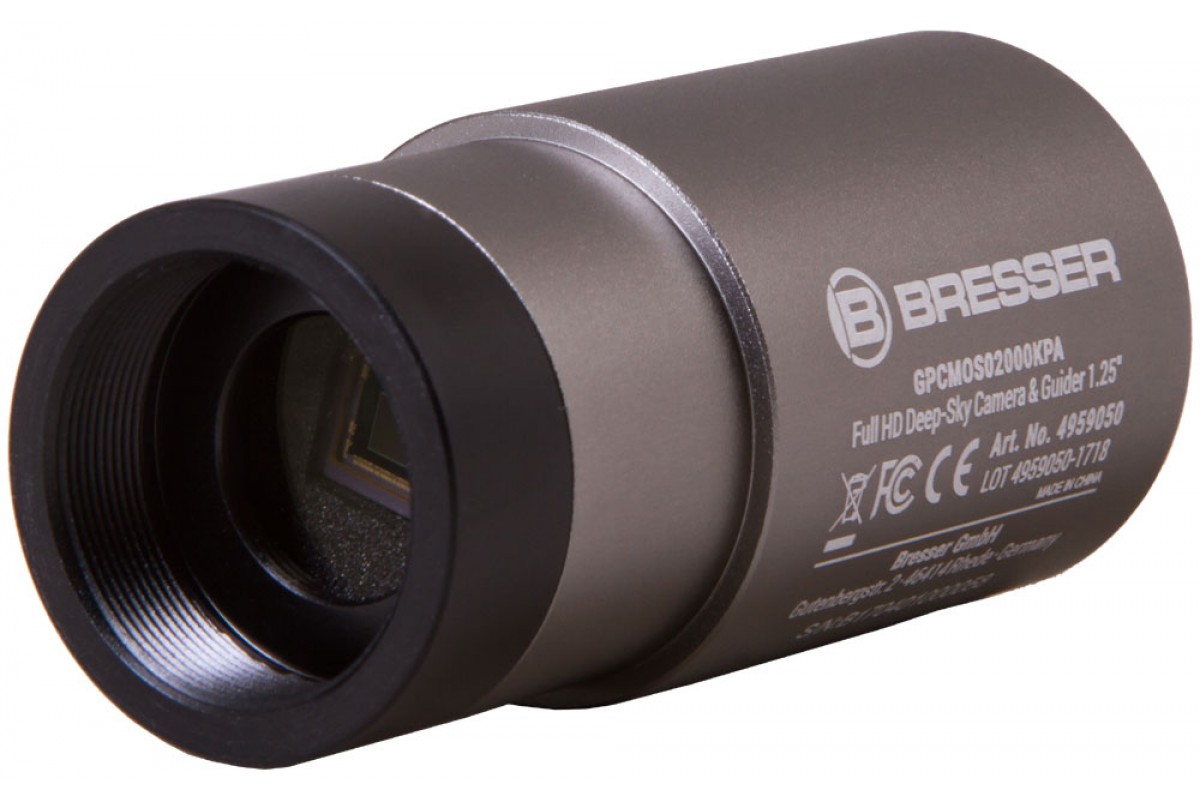 Цифровая камера Bresser Full HD предназначена для гидирования и фотографирования ночного неба. Внутри нее установлен цветной CMOS-сенсор с обратной засветкой, светочувствительность которого достигает 77% при длине волны в 533 нм. Камера отчетливо «видит» и планеты Солнечной системы, и туманности, и тусклые звезды, и далекие галактики. В комплект поставки включен диск с программой ToupSky, которая поможет создавать видеоролики и редактировать фотографии.
