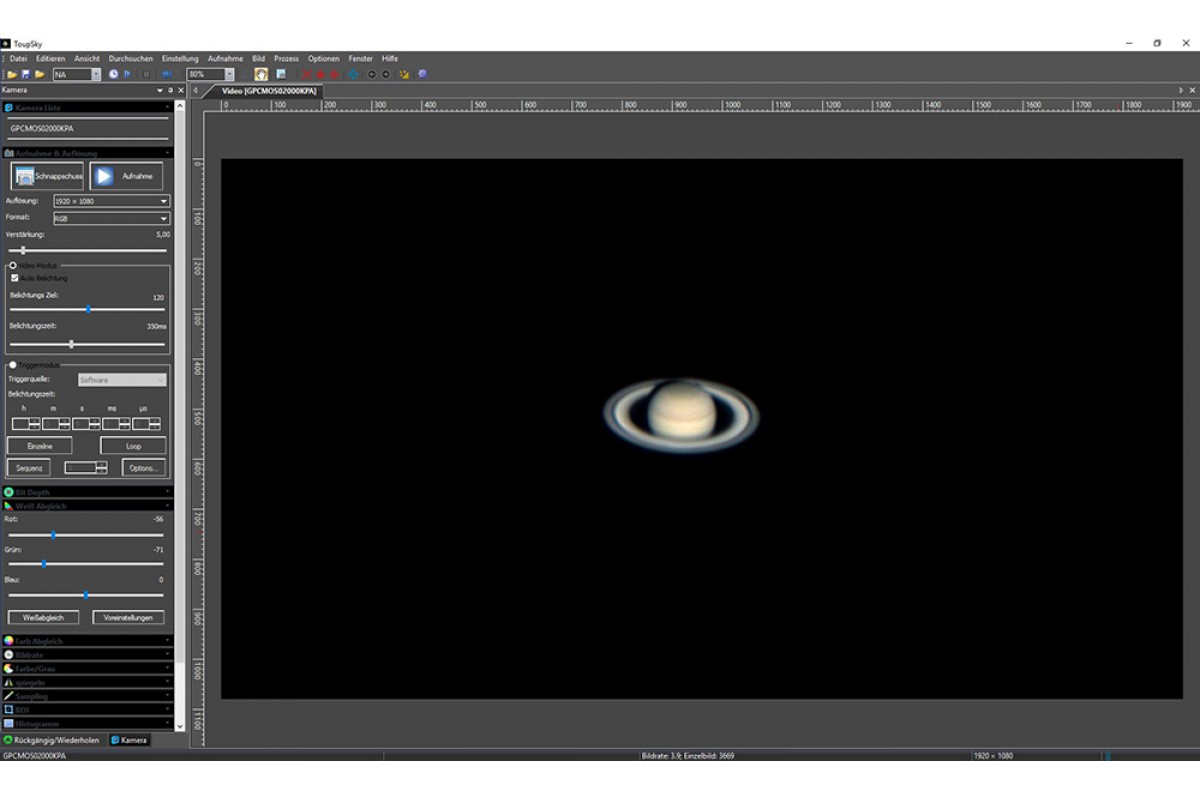 - Технические характеристики|Тип камеры: цветная BRESSER/Touptek GPCMOS02000KPA|Максимальное разрешение: 1936x1096 (Full HD)|Число мегапикселей: 2