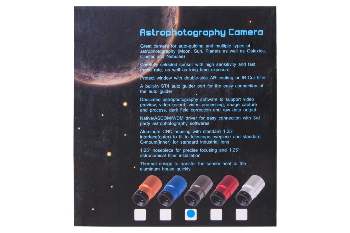 - Дополнительноудлинительная трубка 1,25"; ремешок на камере; драйвер ASCOM