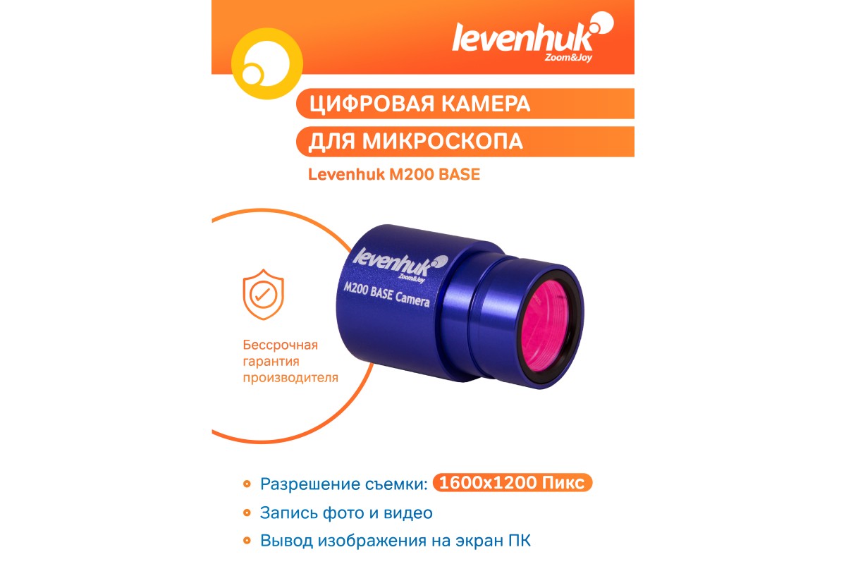 Камера Levenhuk M200 BASE совместима с биологическими, инструментальными и стереоскопическими микроскопами. Диаметр окулярной трубки должен составлять 23,2 мм. Для установки на микроскопы других стандартов следует приобрести адаптер-переходник.