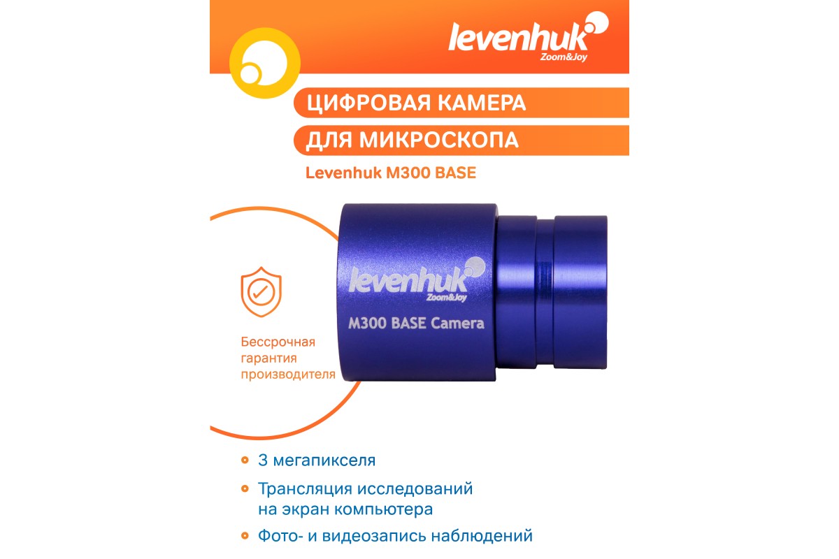 Современная цифровая камера Levenhuk M300 BASE – это возможность расширить возможности вашего микроскопа. Благодаря ей вы сможете вести визуальные наблюдения, показывать интересные эпизоды исследований широкой аудитории, фотографировать образцы, записывать обучающие видео. Камера устанавливается прямо в окулярную трубку микроскопа и передает изображение на экран компьютера или ноутбука в режиме реального времени.