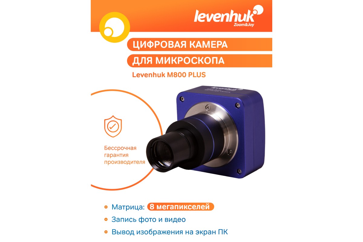 Цифровая камера Levenhuk M800 PLUS – модель профессионального уровня для микроскопов. Ее можно использовать как цифровой окуляр или снимать с ее помощью фото и видео образцов. Цифровая камера совместима с микроскопами любых марок и комплектуется всеми необходимыми аксессуарами.