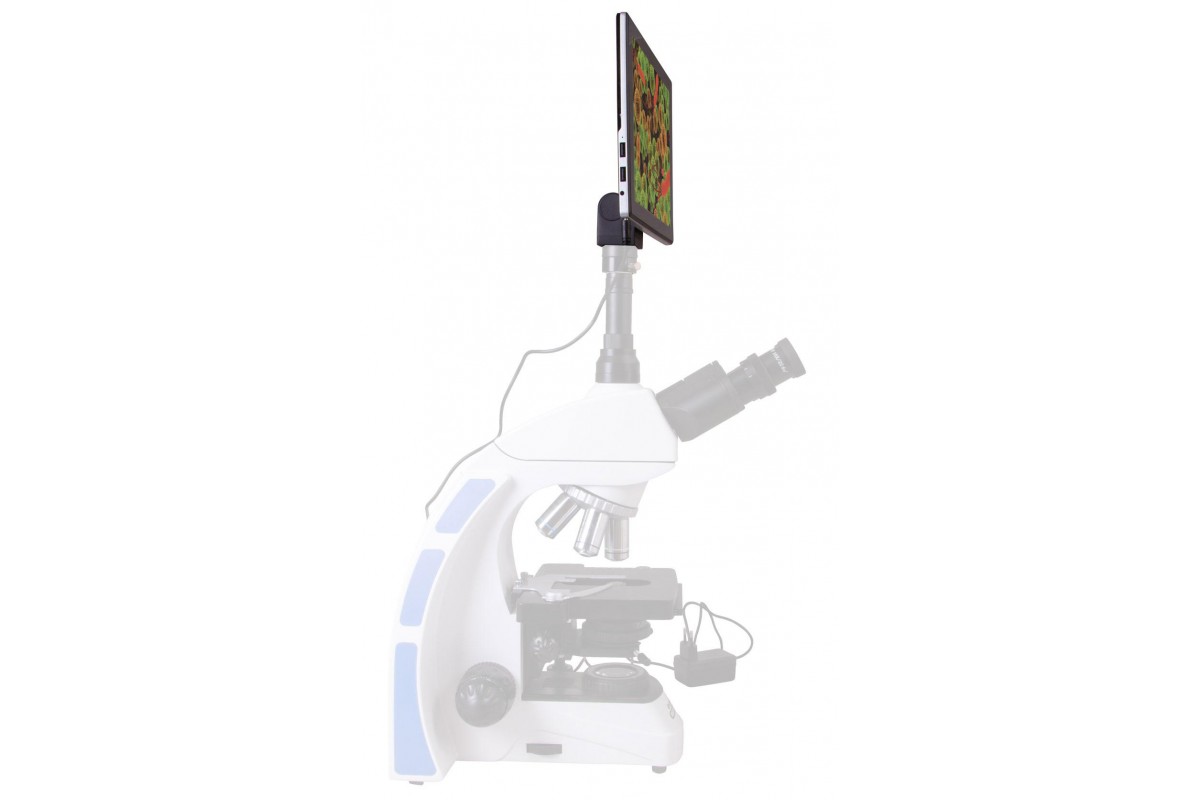 Перед вами цифровая камера с цветным сенсорным экраном, который работает на Android. По сути – это компьютер, который показывает изображение с объектива микроскопа, позволяет записывать видеоролики, снимать фотографии и сохранять их во внутренней памяти или на внешних носителях данных. И управлять этим компьютером можно всего одним касанием. Цифровая камера Levenhuk MED – это полноценная система визуализации, делающая работу в лаборатории наиболее продуктивной. Так как ход исследований показывается прямо на экране, нет нужды постоянно смотреть в окуляры – глаза смогут отдохнуть от непрерывной работы.