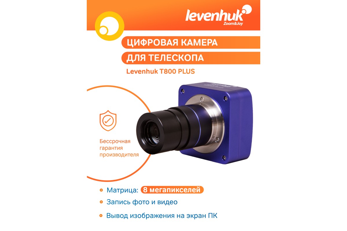 Цифровая камера Levenhuk T800 PLUS подойдет для любителей, начинающих исследователей космоса и требовательных пользователей.